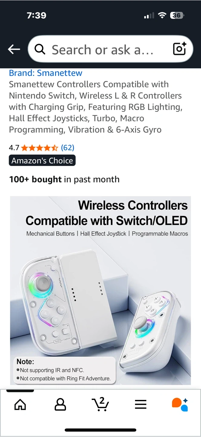 Selling a pair of Smanettew wireless controllers compatible with Nintendo Switch! These controllers feature RGB lighting, Hall Effect joysticks, Turbo, Macro Programming, Vibration, and 6-Axis Gyro. They're compatible with Switch/OLED models and have mechanical micro buttons. The joysticks are wear-free, drift-proof, and provide precision control. They also have liquid silicone rubber for 5 million+ presses deformation-free