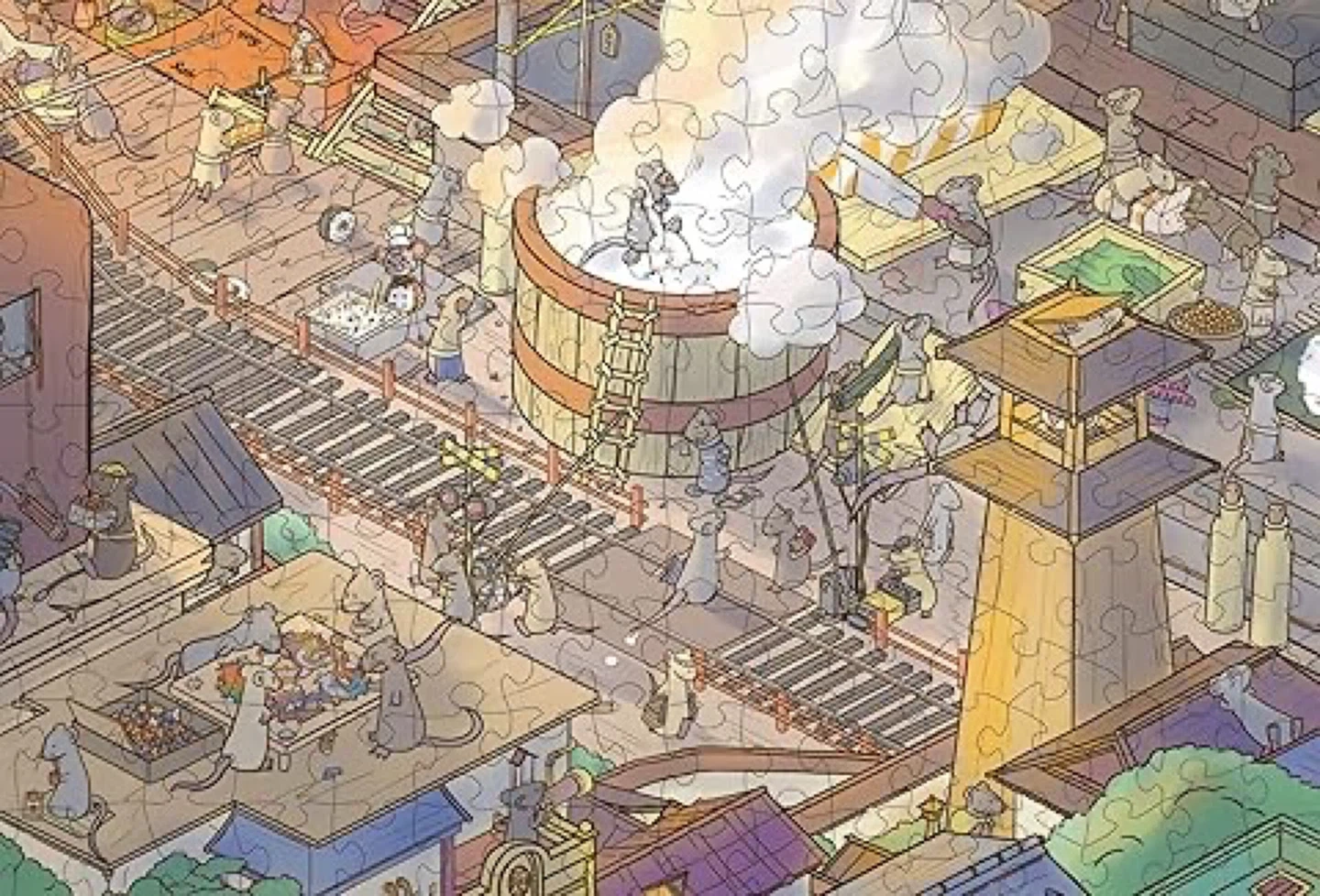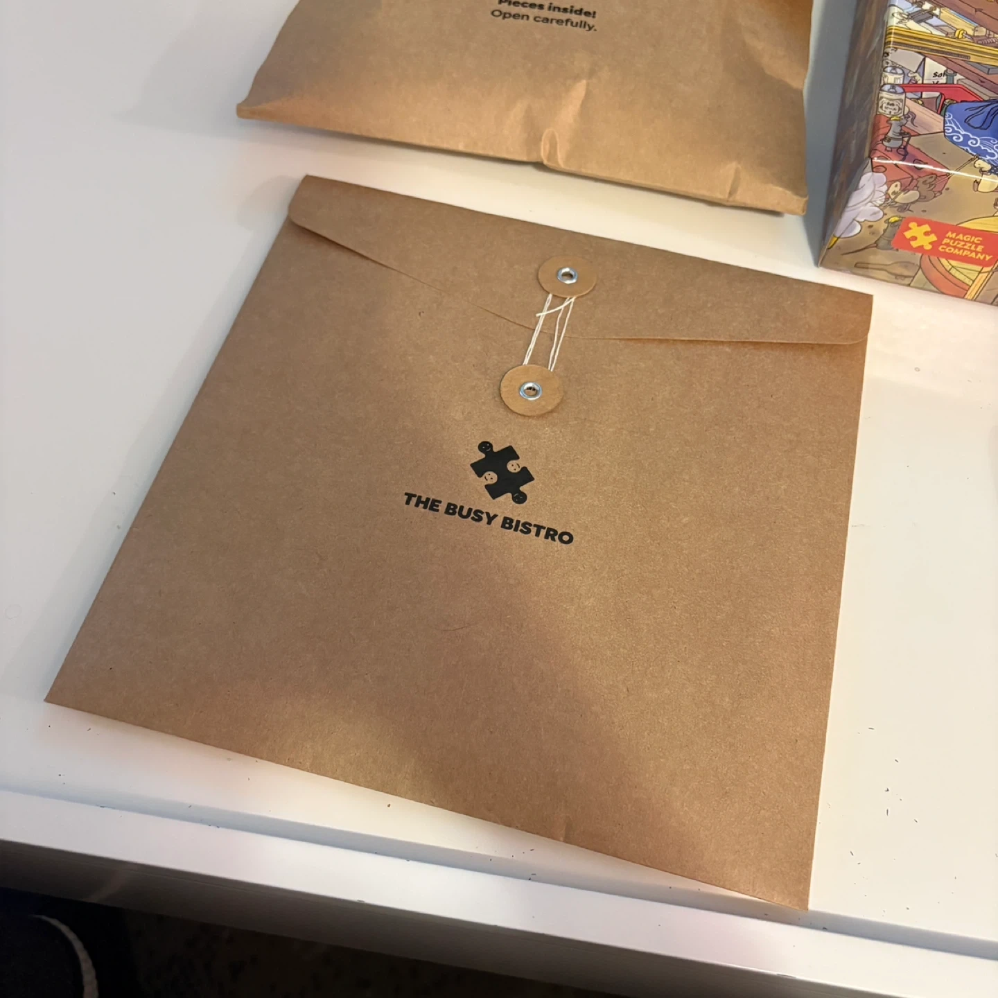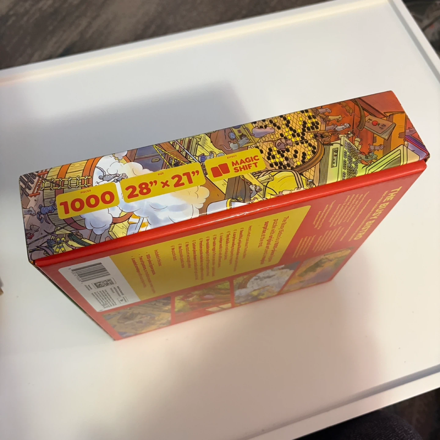 Magic Puzzle Company The Busy Bistro 1000 Piece Jigsaw Puzzle 28" x 21" Series 2 Missing 3 pieces (see which ones in photo), but you get the gist of the main puzzle. Otherwise in excellent condition. Includes box, two envelopes, and 2 artwork posters. The Busy Bistro is a 1000-piece jigsaw puzzle that does a magic trick when you finish it. Beautiful, original artwork full of tiny details, including over 50 easter eggs to discover as you solve the puzzle. Magic Puzzles are printed on premium Dutch puzzle cardboard so they snap together and stay put. Mind-blowing magical twist ending: using ideas from visual illusions and magic to make this the most interesting puzzle you’ve ever solved. Styles: puzzle home family game
