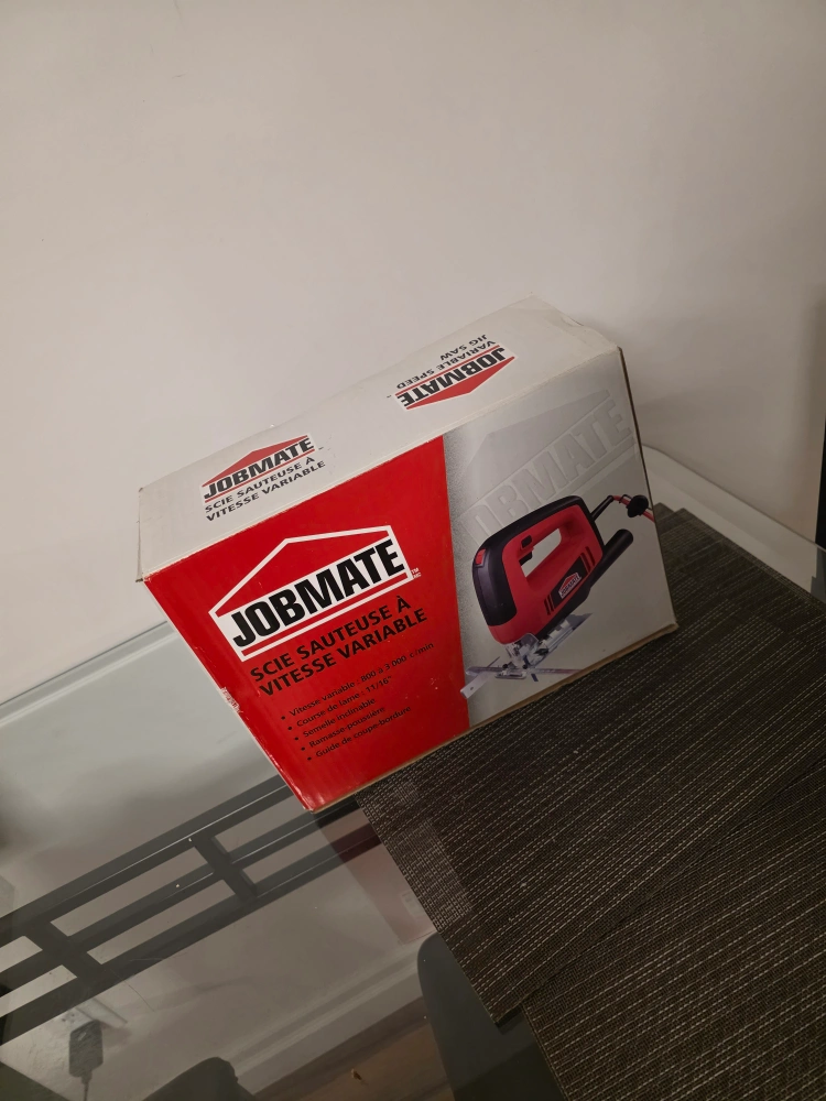 Selling a Jobmate variable speed jig saw. It comes in the original box. Features: - Variable speed: 800-3000 SPM - 11/16" blade stroke - Beveling sole plate - Dust collection chute - Edge-cutting guide