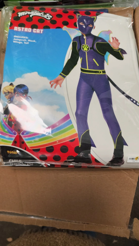 Selling a Miraculous Astro Cat costume for kids! This is a child's size medium (8-10). The costume includes a jumpsuit, mask, wings, and tail. Perfect for dress-up or Halloween!