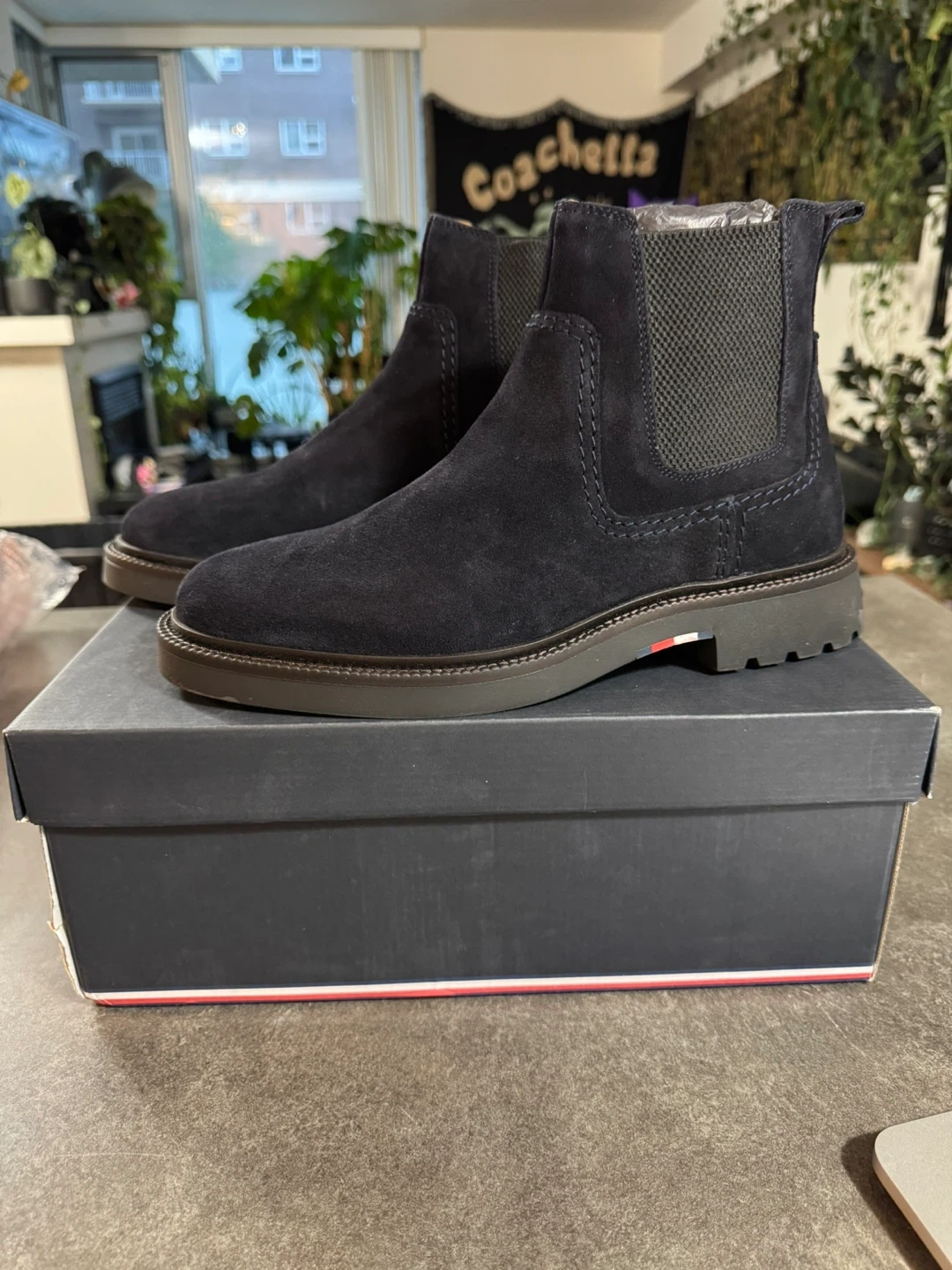 Tommy Hilfiger Chelsea boots in excellent condition! These stylish boots are a size 10US and come with the original box. The boots are a beautiful navy suede, perfect for dressing up or down. They feature a comfortable elastic side panel and a durable sole. Don't miss out on these classic boots! Brand New Never Worn Original retail $199cdn Size 10US/43EU
