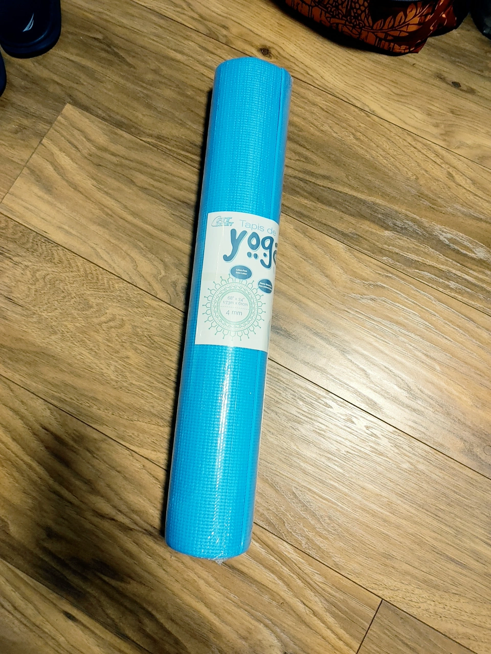 Selling a brand new Fit Circuit yoga mat! It's still in its original packaging. It's a lovely bright blue colour and measures 68" x 24" (1.73m x 61cm). It's 4mm thick, latex-free, and heavy metal free!