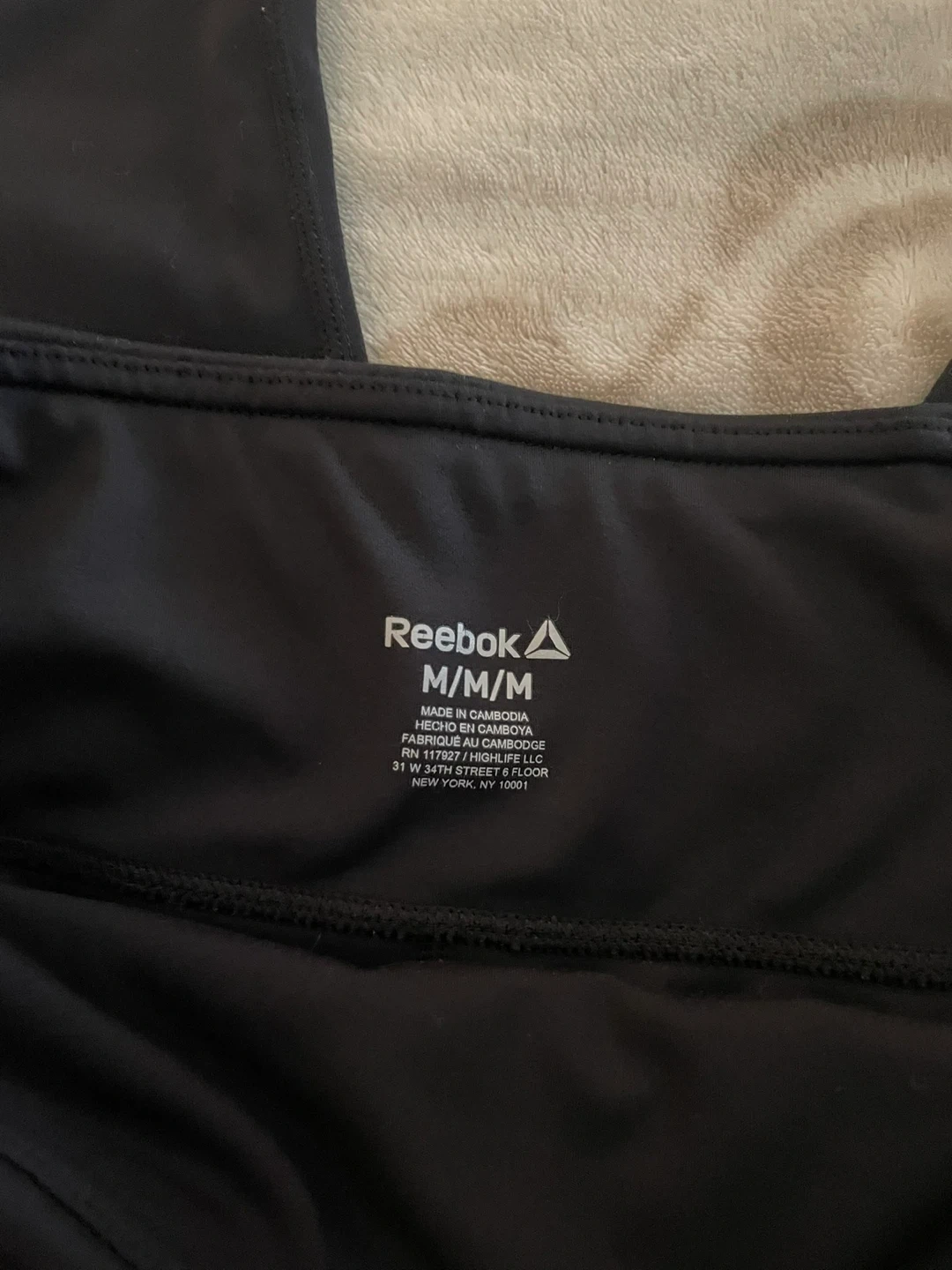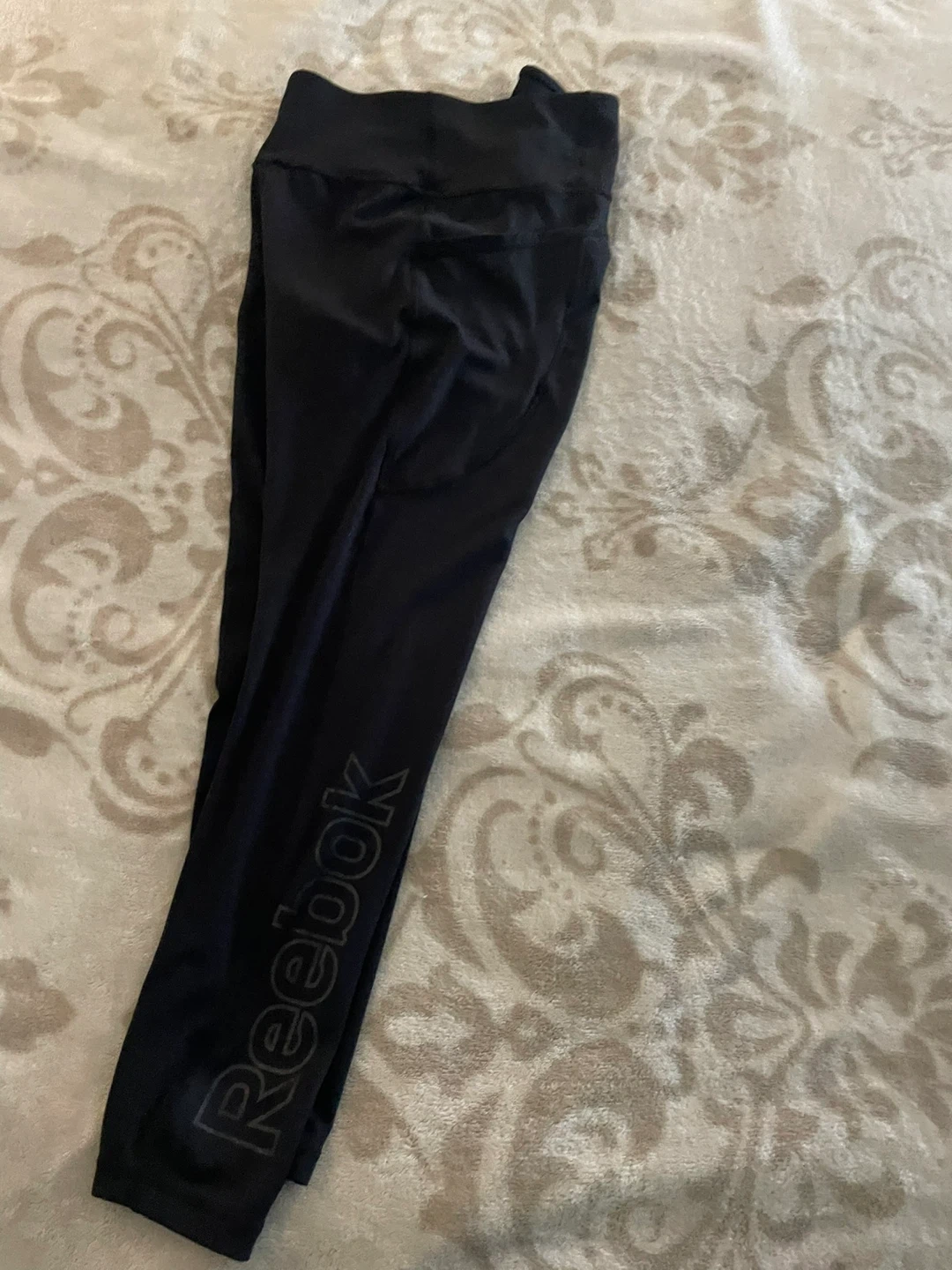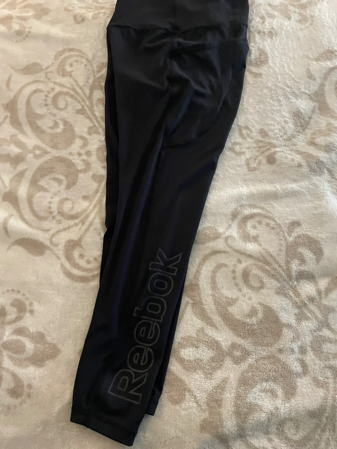 Selling a pair of Reebok leggings in black. They are a size medium. Great for workouts or just lounging around!