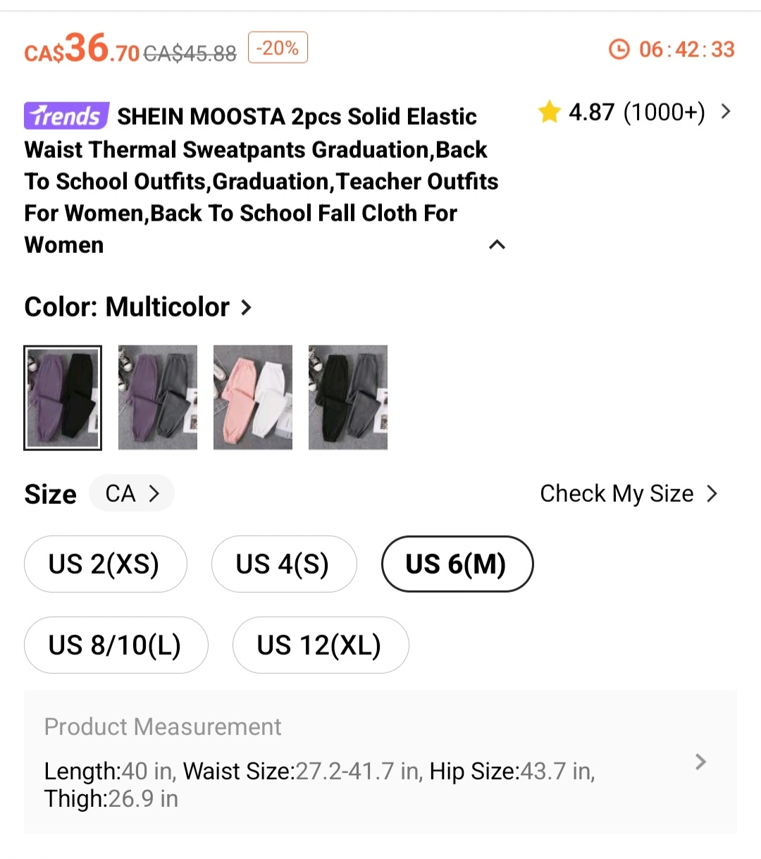 Shein Sweatpants - Size M - $5 Each - USED ONCE Selling two Shein sweatpants. One is a nice lavender colour and the other is black. They are both Size M . The material is thermal, so they are perfect for keeping cozy! Used both once. In good condition. Like New. Size M - Please see 2nd picture with size measurements. Selling each pants for $5 each. Pick-up only. Porch Pick-up perferred. Cash Perfered. E-transfer is an option. Major Intersection: St.Clair and Midland, Scarborough