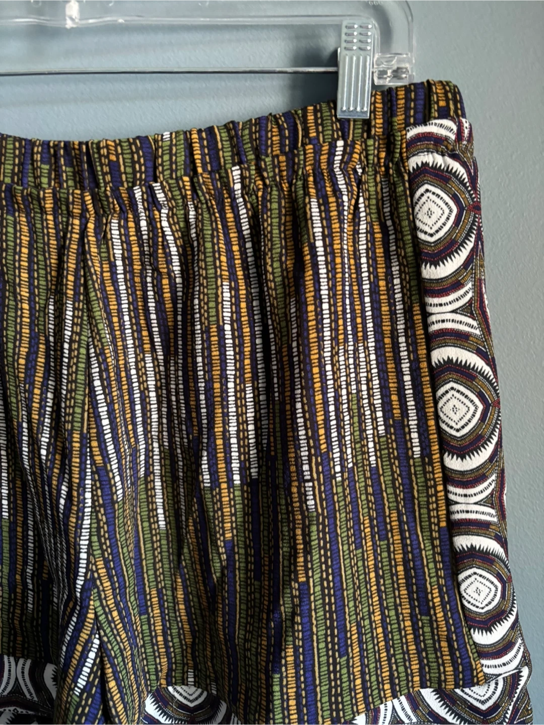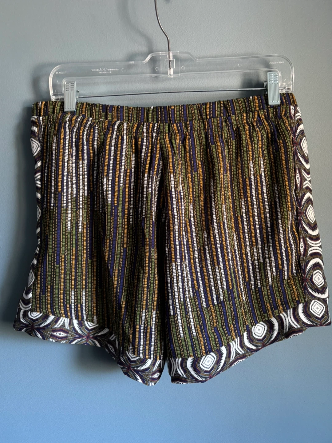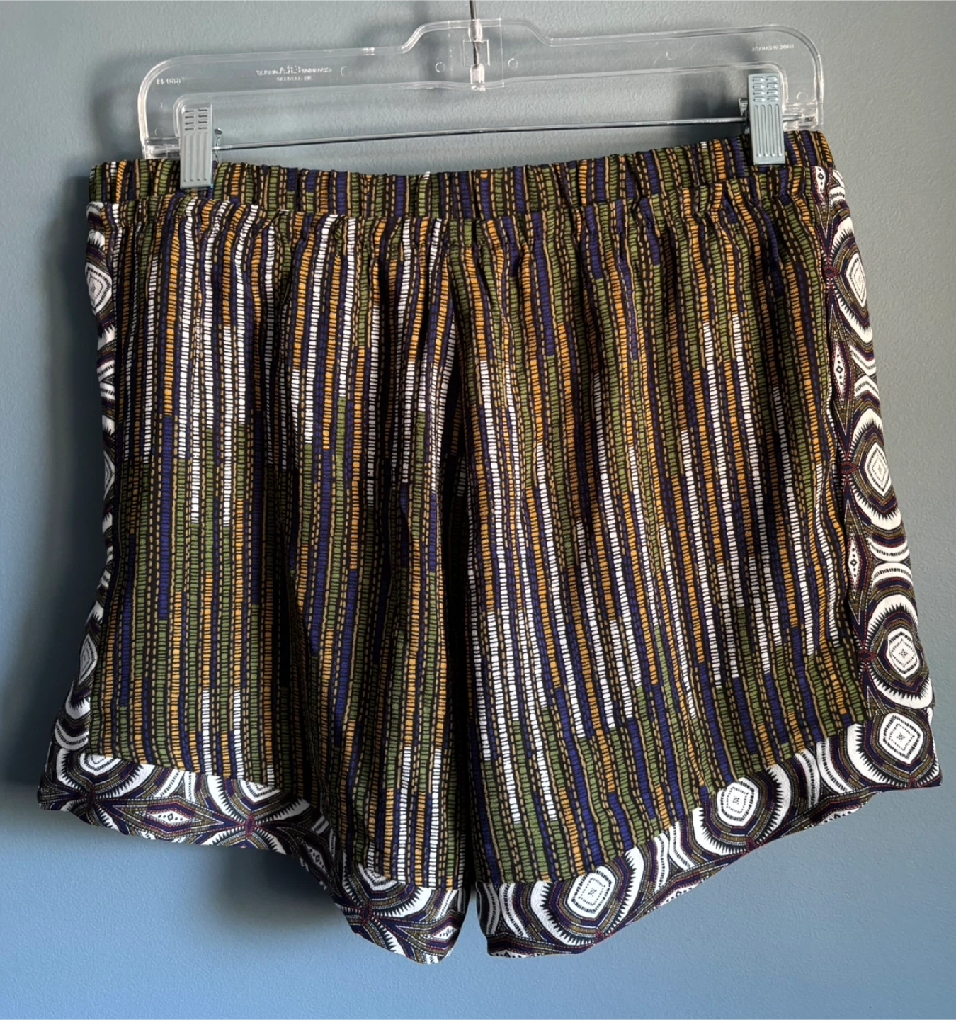 H&M Conscious shorts in size 12. These shorts feature a unique pattern with colours like blue, green, white and orange. Made in Indonesia.