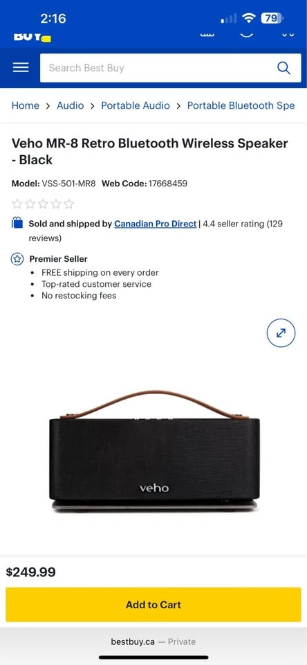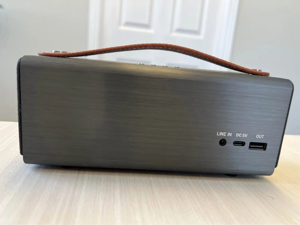The Veho MR-8 is a retro Bluetooth wireless speaker with powerful 2 x 6 watt output and built-in power bank (charges all smartphones & most tablets). The 4000mah battery provides battery life for up to 32 hours of playback, perfect for your travels or home/garden. Brand new - open box. USB-C charging port - 1m cable provided Built in power bank - charges all smartphones and most tablets Width: 5.31 cm Height: 8.001 cm Depth: 18.288 cm