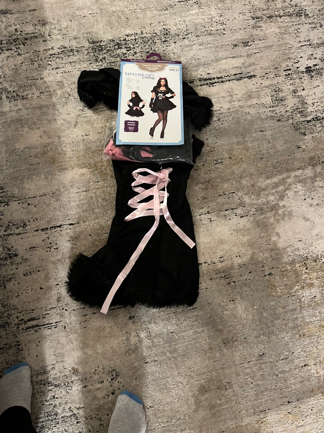 Selling a Wonderland Costumes Black Cat costume in women's size Adult Medium (8-10) It includes: - Arm warmers - Headband - Choker - Shrug - Dress Originally bought for $39.97