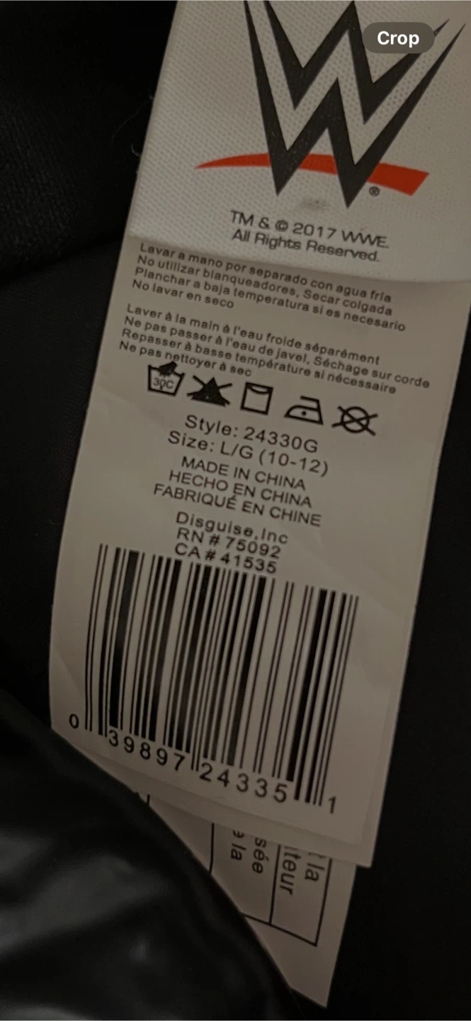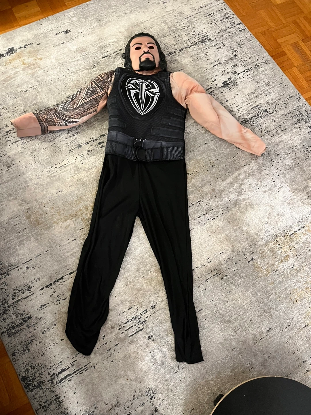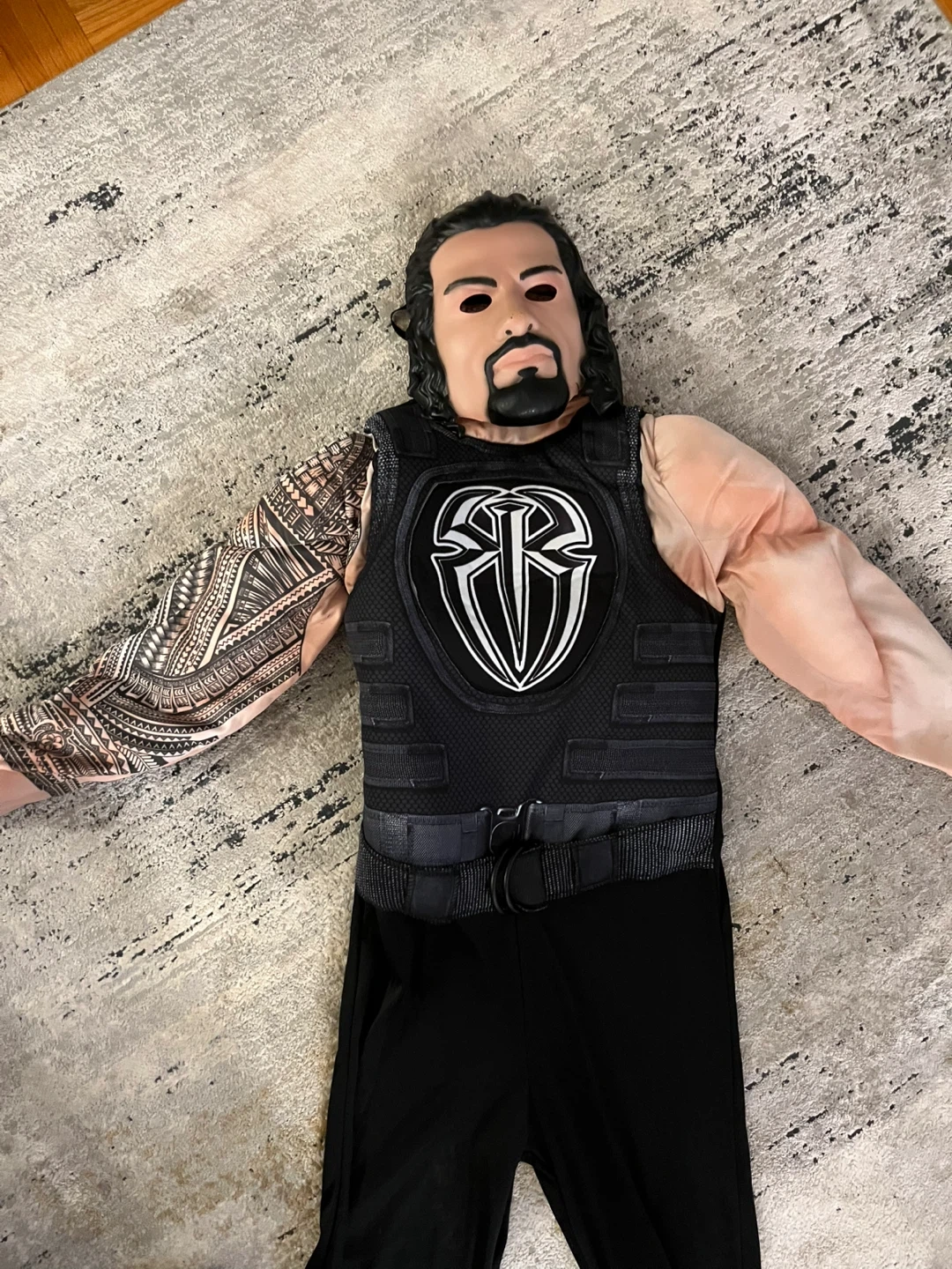 Selling a WWE Roman Reigns costume in size L/G (10-12). The costume includes the mask, vest, and pants. Perfect for any young WWE fan!