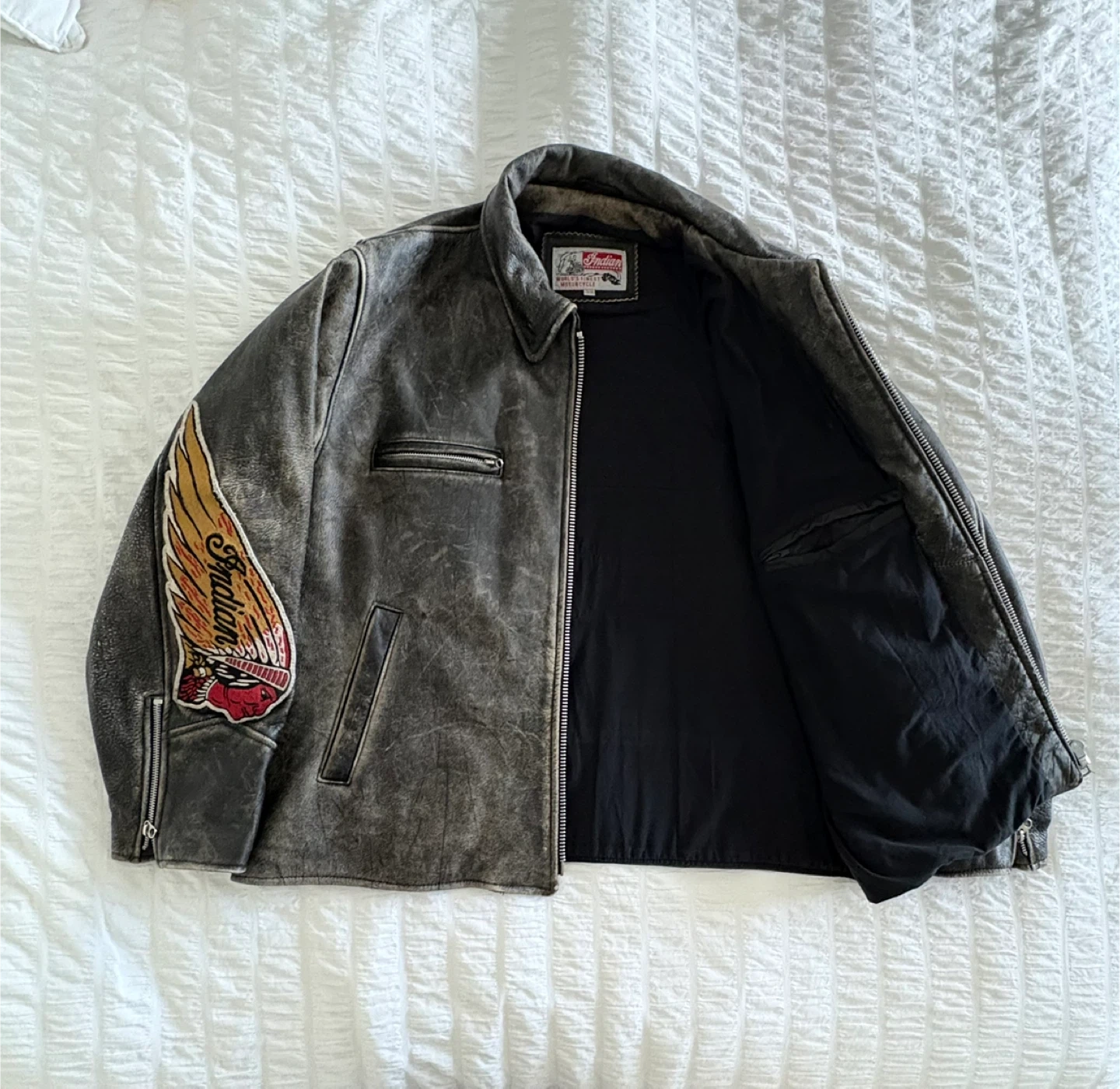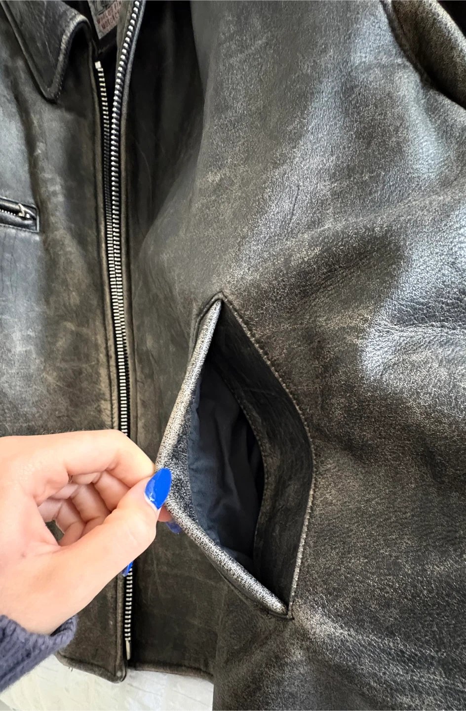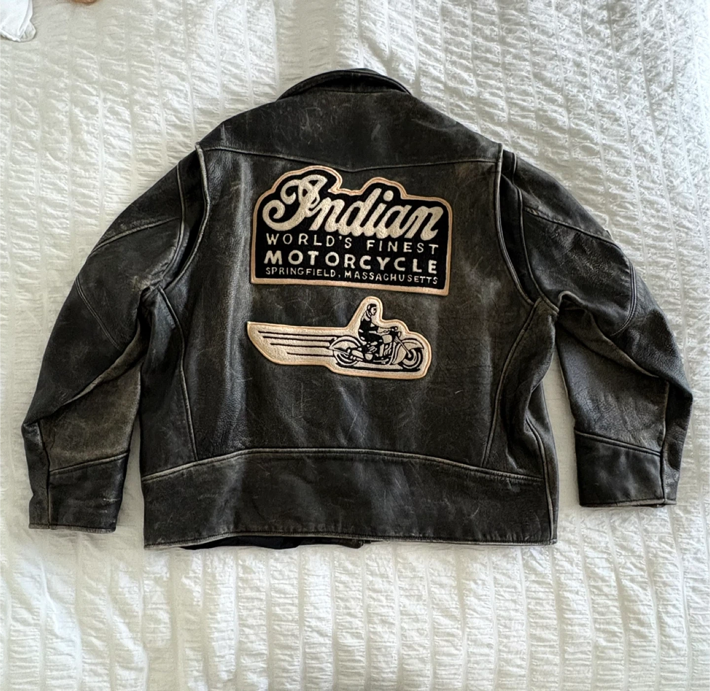 Vincent black lightning vintage leather jacket 1990s custom patchwork excellent condition Size XL