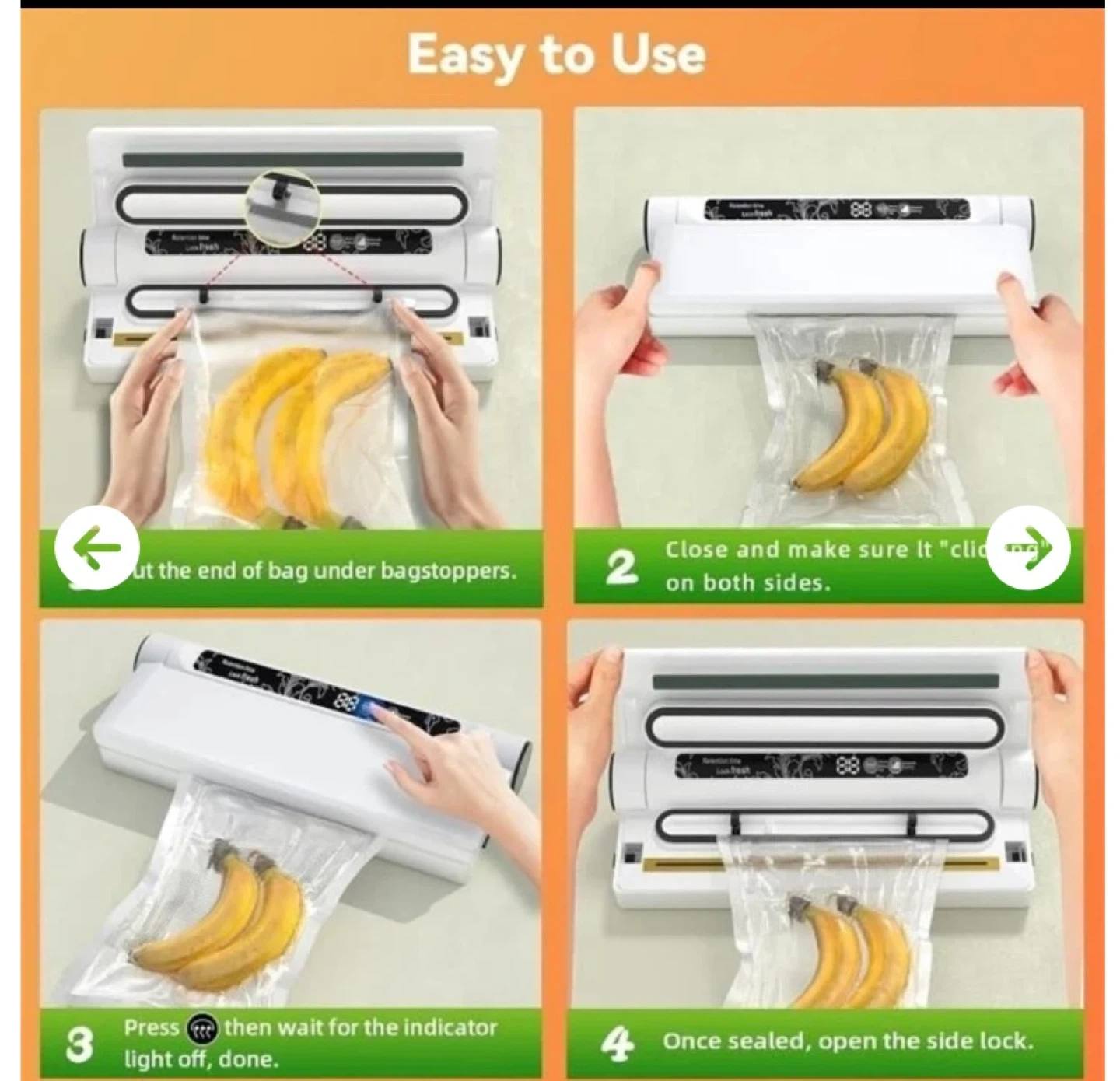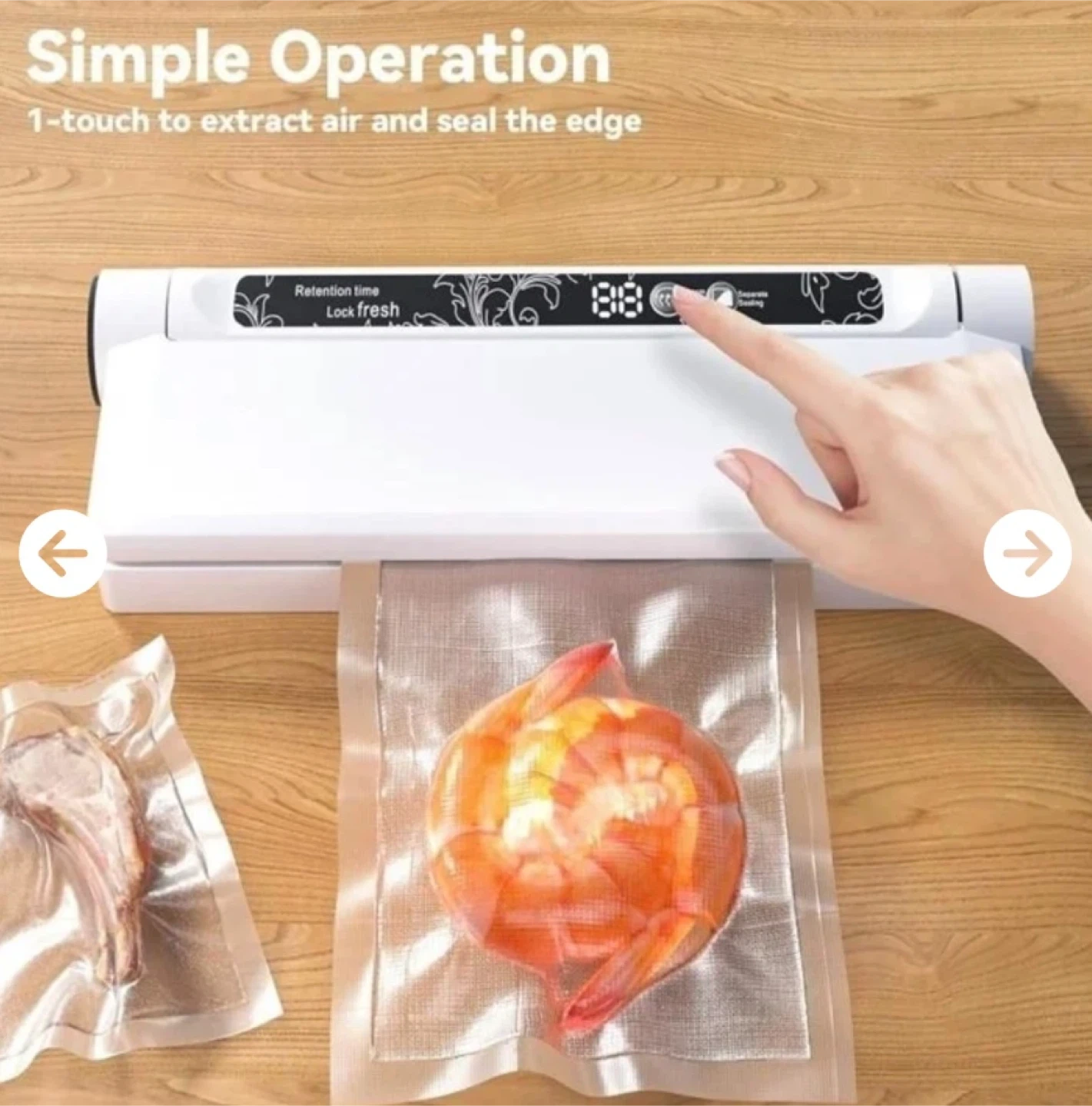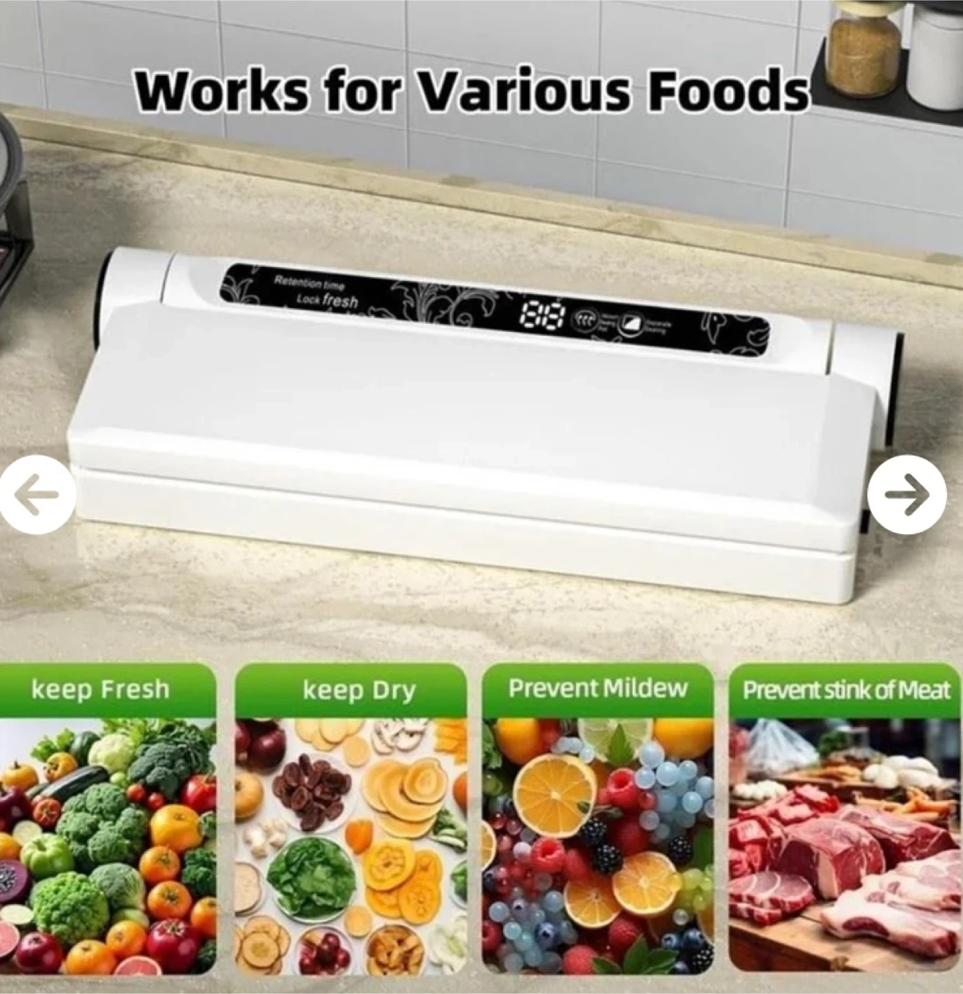 Keep your food fresh with this handy vacuum sealer! It's super easy to use with a one-touch operation to extract air and seal the edge. Works great for various foods, helping to keep them fresh, dry, and prevent mildew. It also helps prevent that stinky meat smell! Comes with the box.