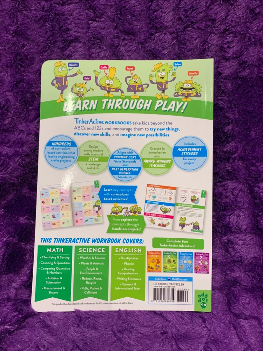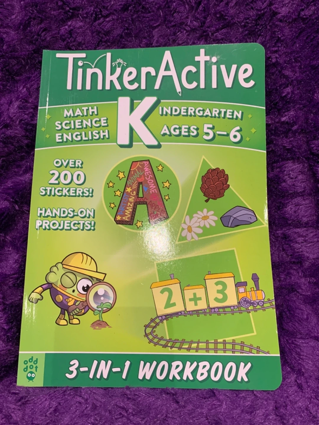 I'm selling a TinkerActive Kindergarten 3-in-1 workbook! It's designed for ages 5-6 and covers math, science, and English. It includes over 200 stickers and hands-on projects to make learning fun and engaging for your little one