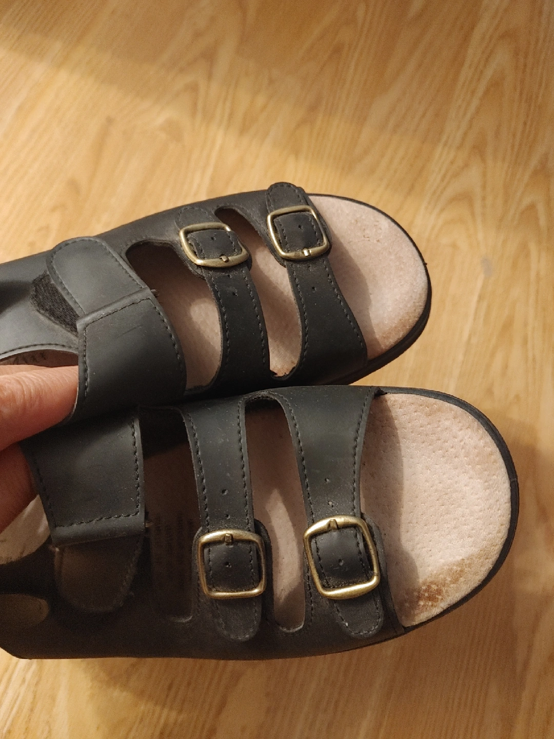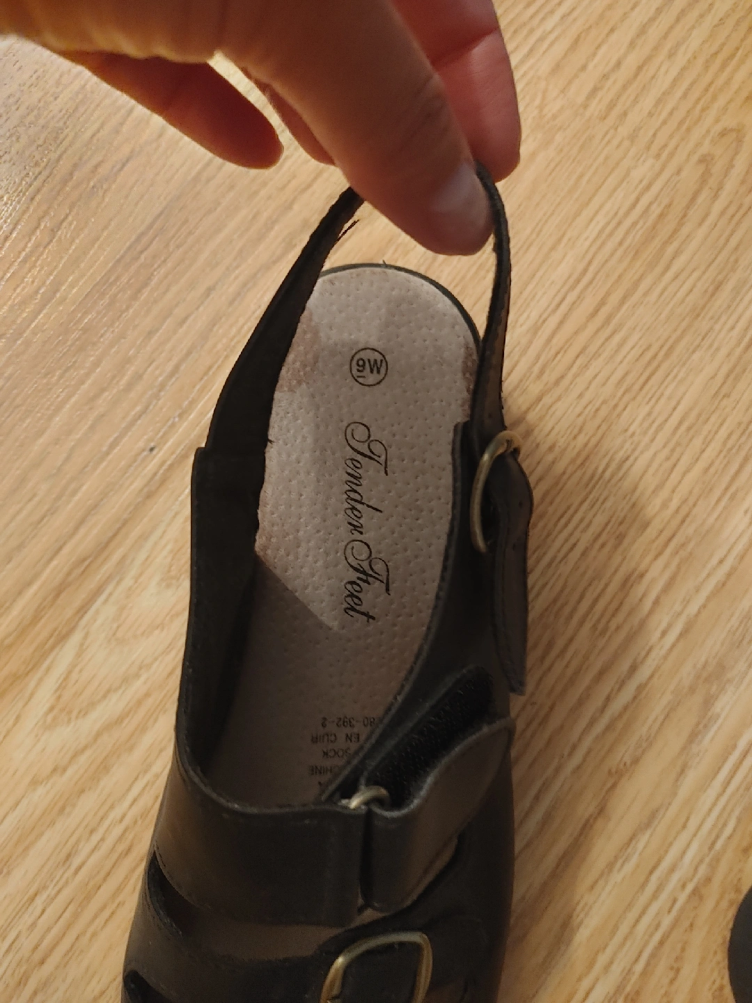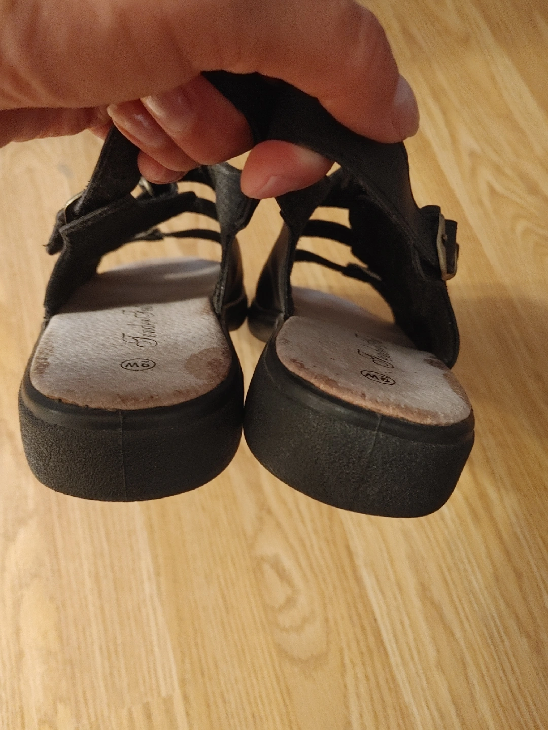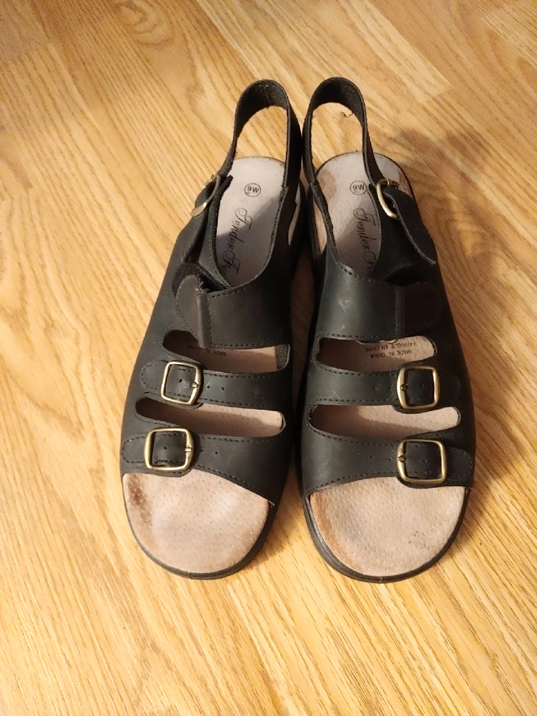 Selling a pair of Tender Foot sandals in black. They are a size 9 and have a cute buckle design. They're in good condition and ready for a new home!