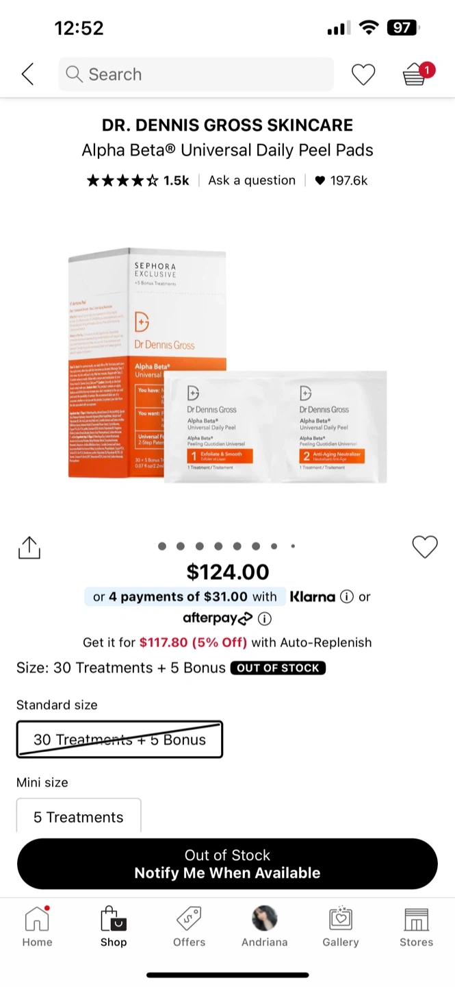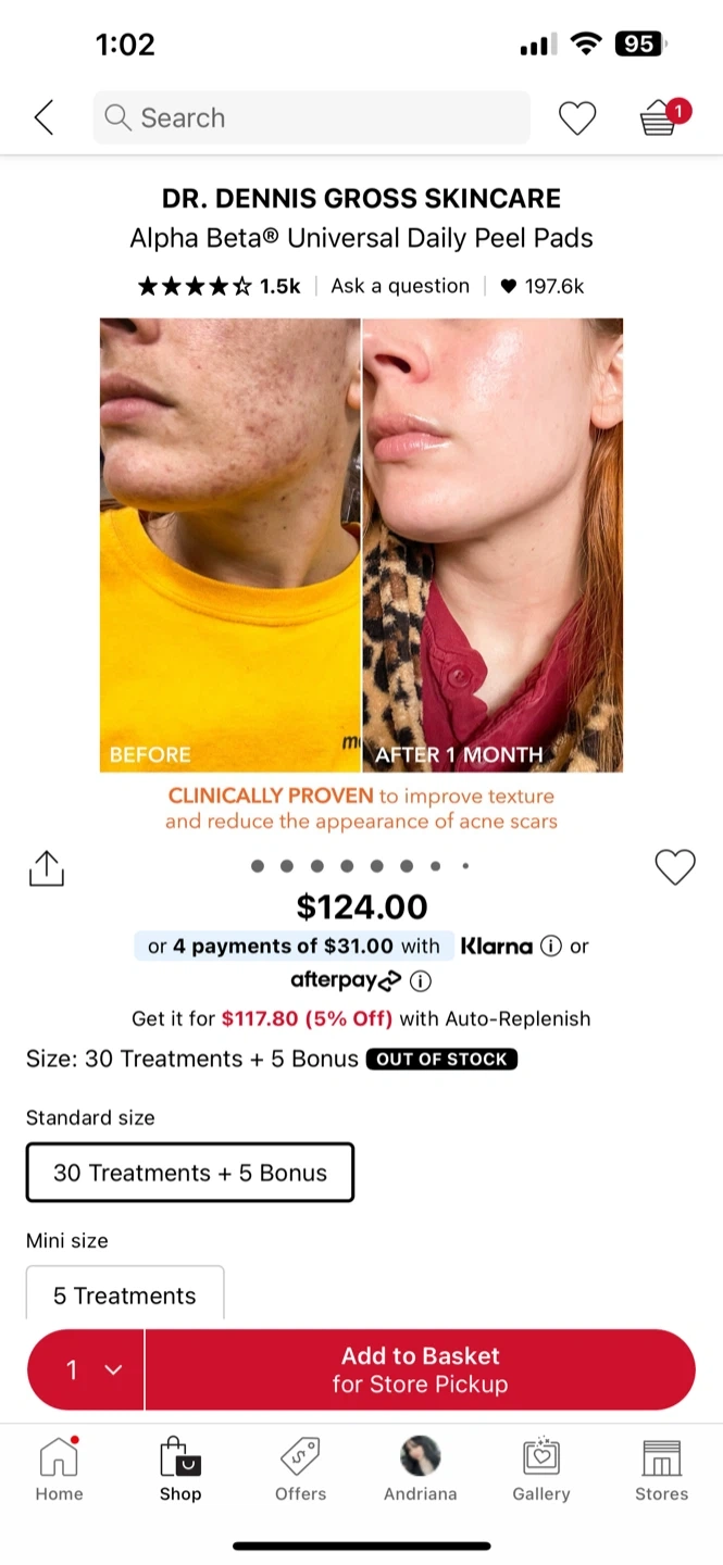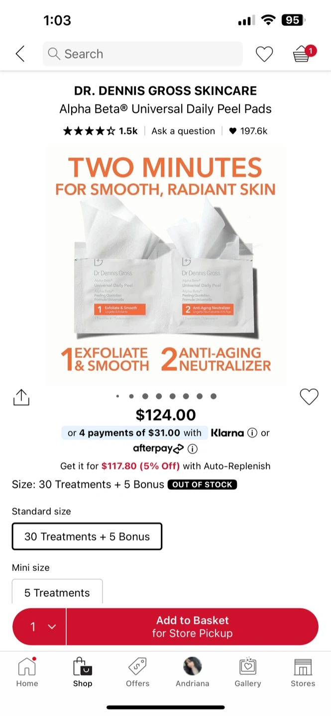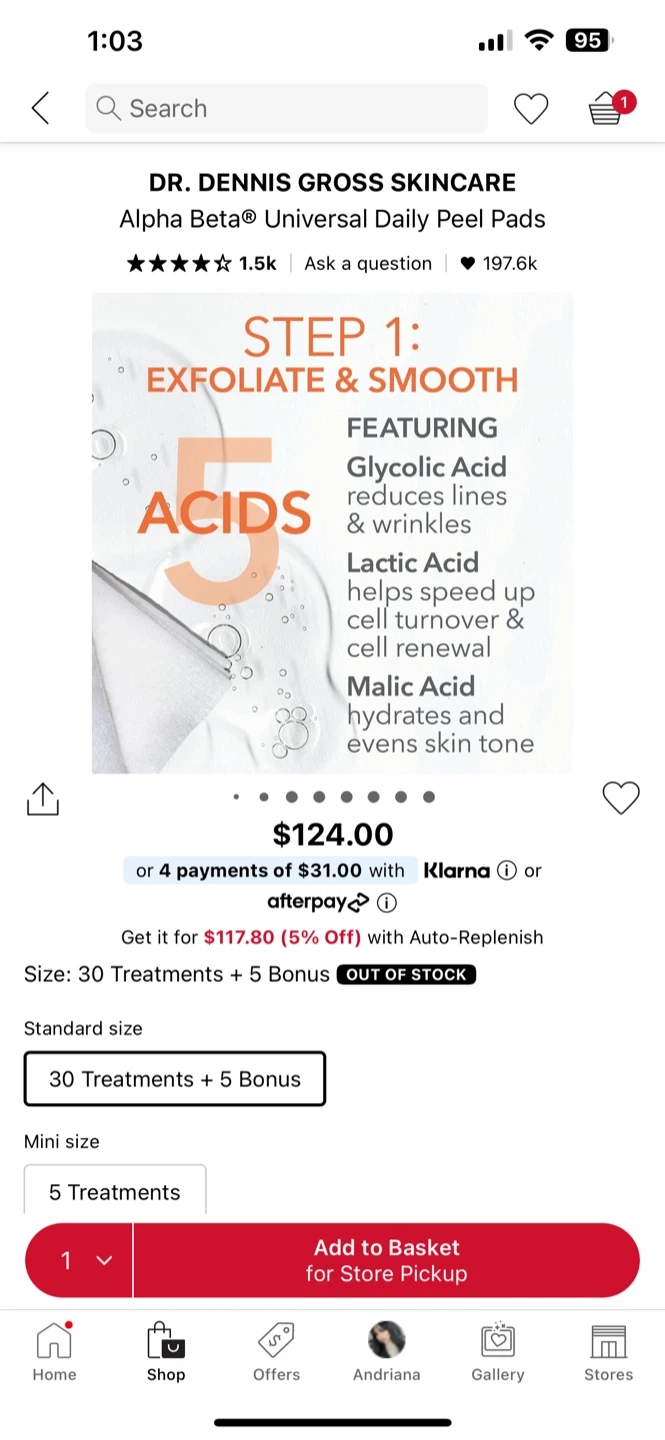 25 Treatments Universal Daily Peel Expiration Date X7 03/2026, X9 07/26, X8 05/27 , X1 07/27 +1 free Treatment Extra Strength Daily peel 01/27 What it is: A two-step AHA/BHA peel pad pre-dosed with five acids and 12 antioxidants to visibly smooth texture, shrink the look of pores, and reduce the look of fine line. Skin Type: Normal, Dry, Combination, and Oily Skincare Concerns: Fine Lines and Wrinkles, Pores, and Uneven Texture Formulation: Wipes Step 1: Water/Aqua/Eau, Alcohol Denat. (SD Alcohol 40-B), Glycolic Acid, Potassium Hydroxide, Hamamelis Virginiana (Witch Hazel) Water, Salicylic Acid*, Polysorbate 20, Citric Acid, Lactic Acid, Malic Acid, Camellia Sinensis Leaf Extract, Achillea Millefolium Extract, Chamomilla Recutita (Matricaria) Flower Extract, Soy Isoflavones, Glycerin, Copper PCA, Zinc PCA, Lecithin, Alcohol, Polysorbate 80, Disodium EDTA, Fragrance (Parfum), Phenoxyethanol, Benzoic Acid, Sodium Benzoate, Potassium Sorbate (* - exfoliant). Step 2: Water/Aqua/Eau, Sodium Bicarbonate, Ascorbic Acid, Retinol, Tocopheryl Acetate, Resveratrol, Ubiquinone, Adenosine, Achillea Millefolium Extract, Camellia Sinensis Leaf Extract, Soy Isoflavones, Phospholipids, Leuconostoc/Radish Root Ferment Filtrate, Copper PCA, Sodium PCA, Zinc PCA, Glycerin, Polysorbate 20, Octoxynol-9, Tetrasodium EDTA, Phenoxyethanol, Sodium Benzoate, Potassium Sorbate.