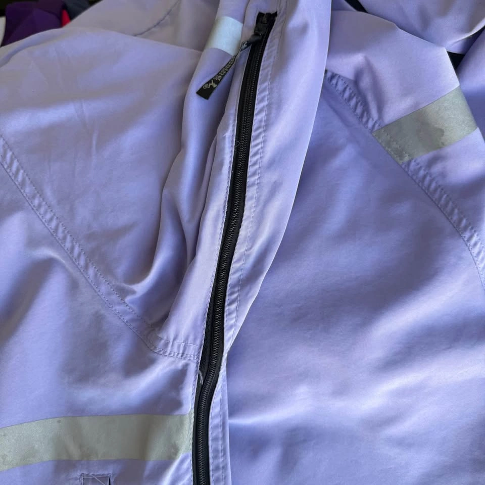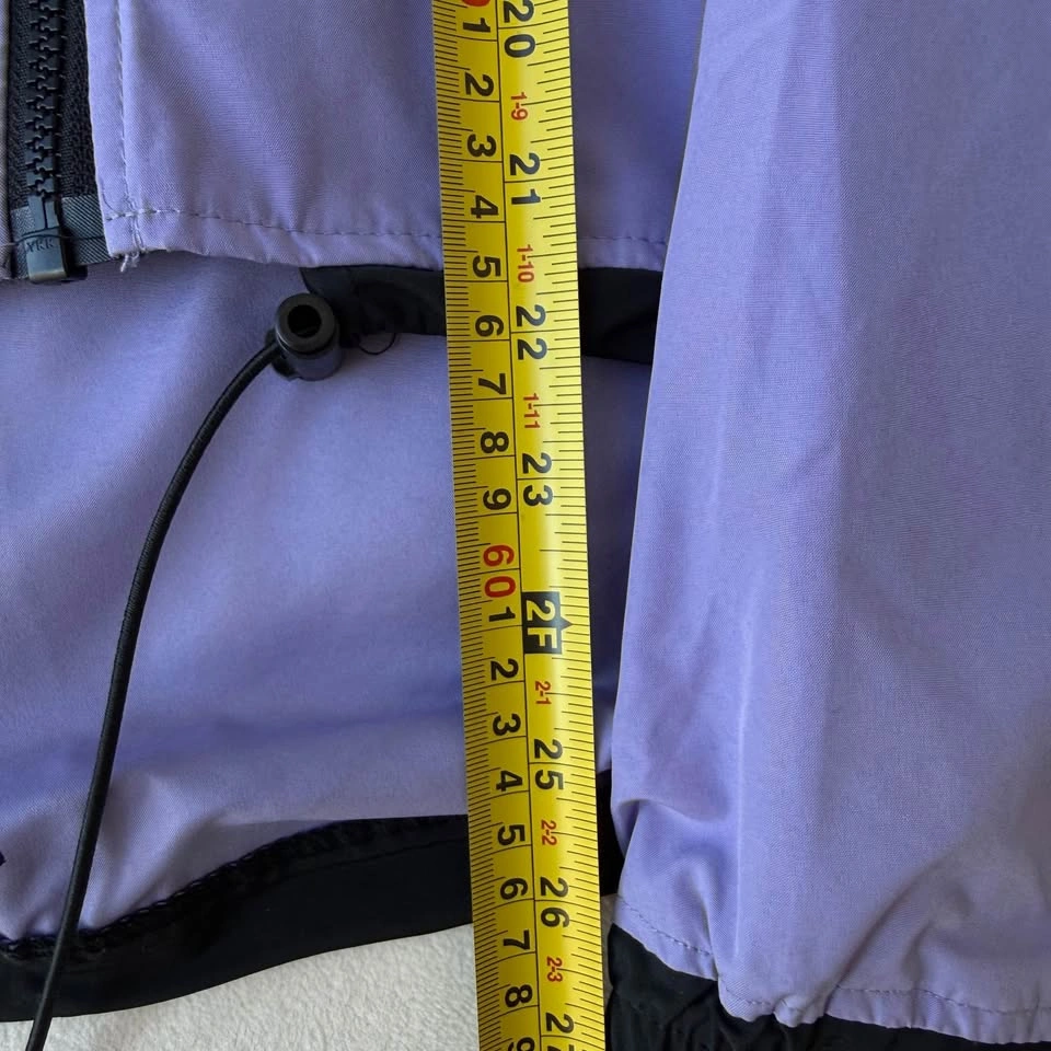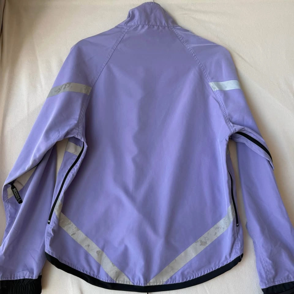Lilac, lightweight Running Room XS windbreaker. Has reflective strips on jacket for higher visibility. There are some slight water type stains on the strips but does not affect the integrity of the jacket. Long zipper detail underneath the arm. Is XS but is quite roomy so could also be S. Measurements shown on pictures for reference. Pick up Bathurst/Adelaide. Can arrange for porch pickup Keele/Sheppard. Smoke and pet free home.