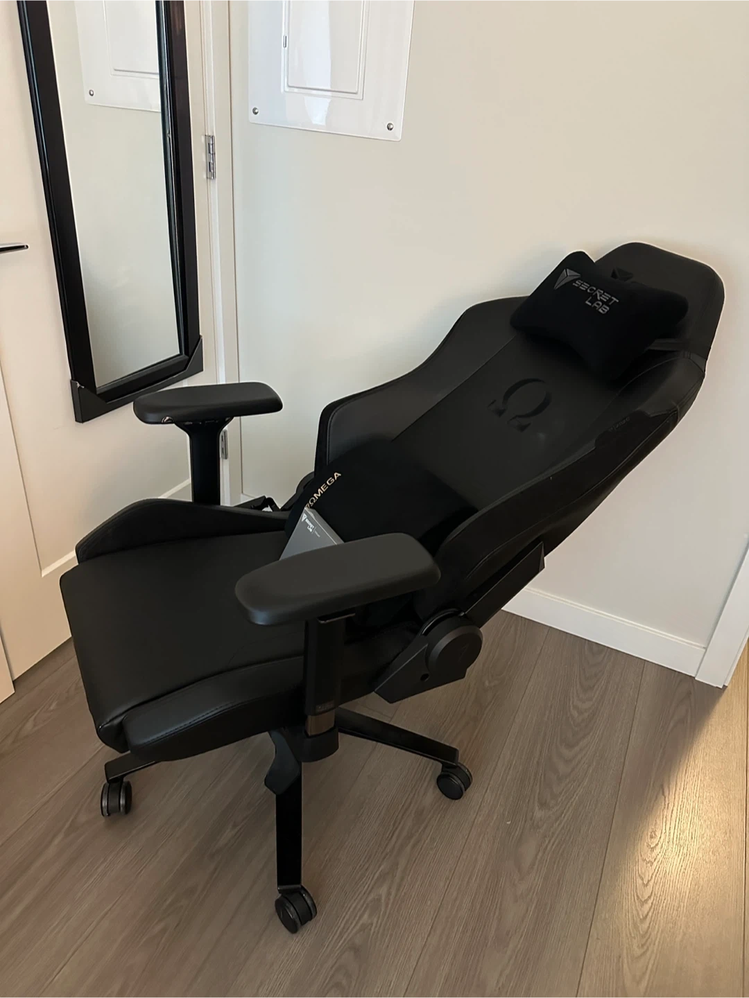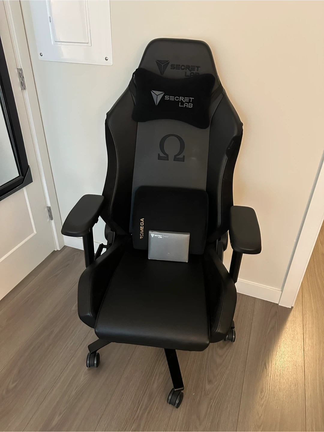 Selling a Secretlab Omega gaming chair in black. It's in great condition and super comfy for long gaming sessions or working from home. Comes with the head pillow and lumbar support pillow!