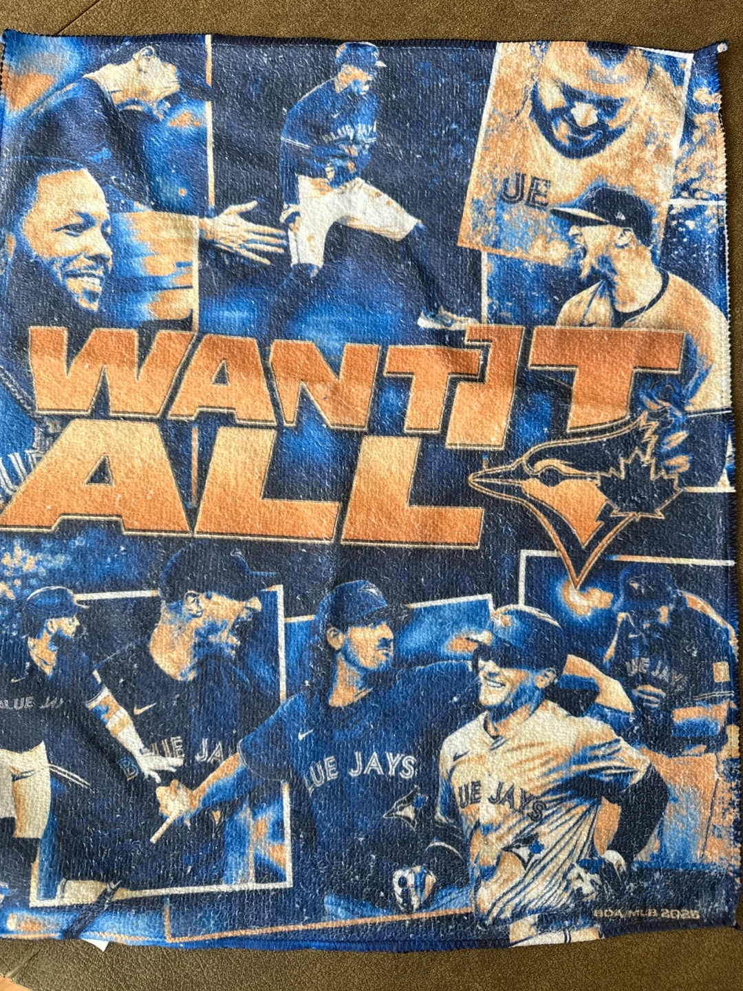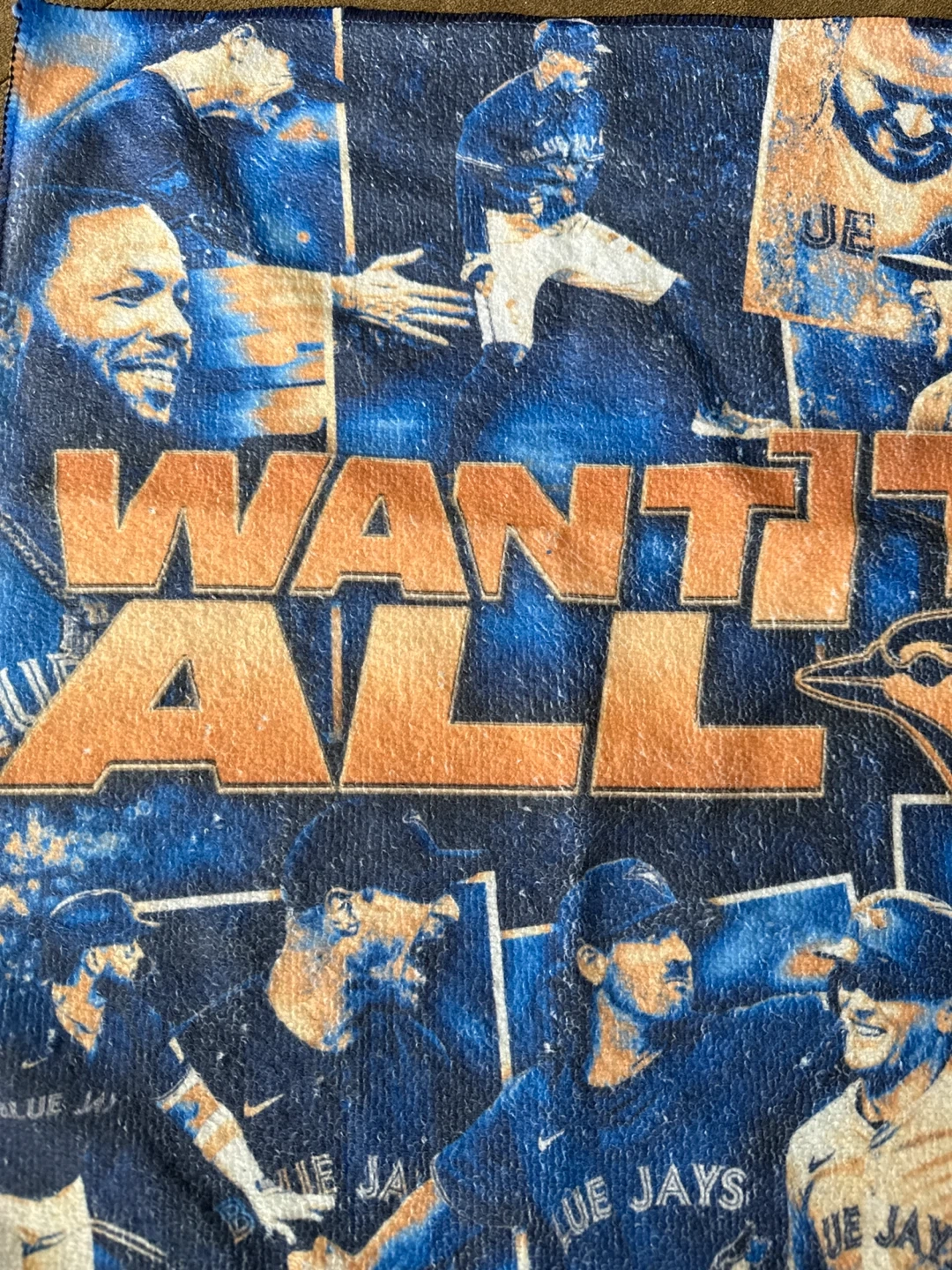 Selling a Toronto Blue Jays towel with the 'Want It All' slogan and player images. It's in excellent condition and perfect for any Jays fan Won’t last