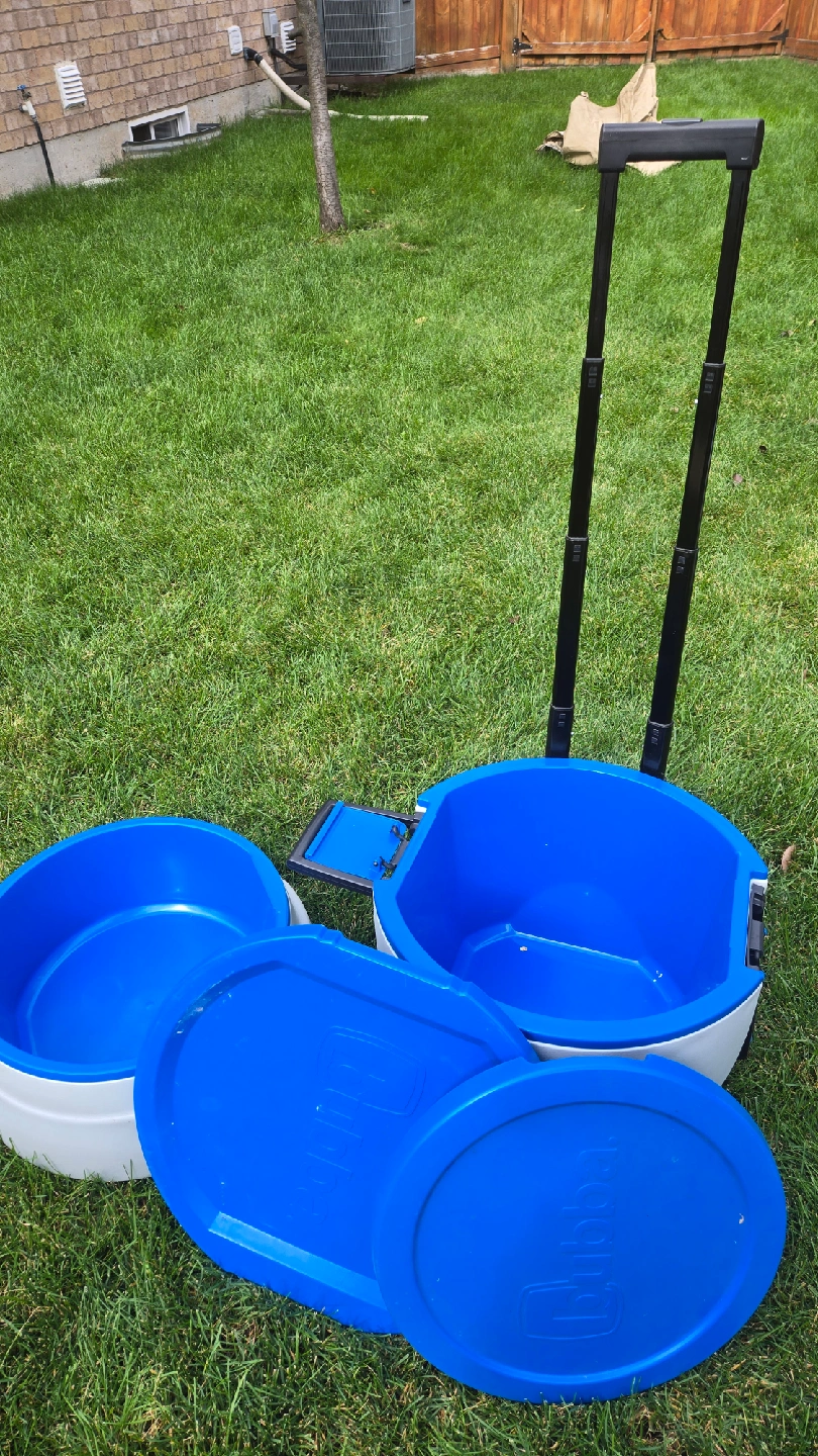 Selling a Bubba rolling beverage cooler. It's in great shape and ready to keep your drinks cold for your next outdoor gathering! It's blue and white and has a convenient rolling feature with a handle for easy transport