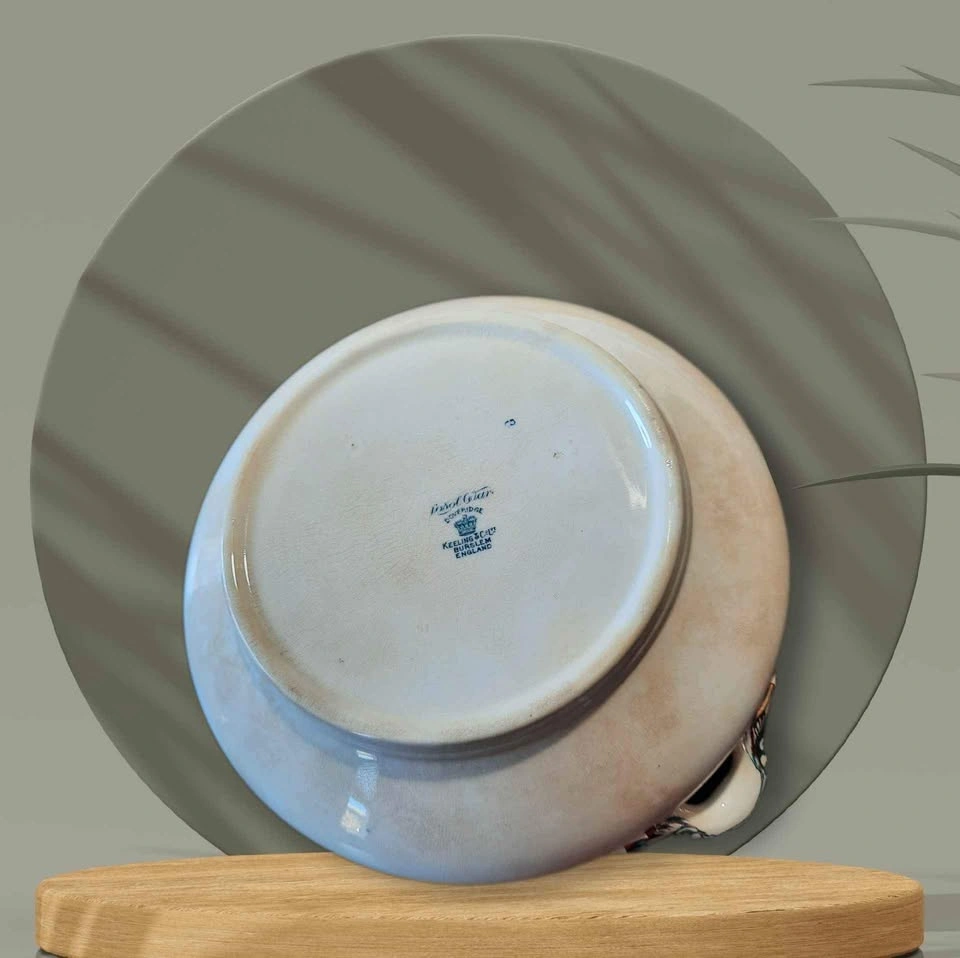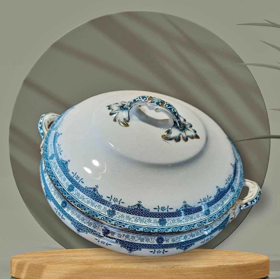 Antique Keeling & Co. Losol Ware Doveridge blue and white transfer ware Covered Tureen or Casserole It has the Keeling & Co. Burslem England Losol Ware backstamp. Antique (Used 1912 - 1936.) 10 1/2" Across handles, 9 1/4" across the body Keeling and Company was from Burslem, and was in business from 1887 - 1936. The tureen is good condition Colors are bright, gold edge intact, very light signs of use only. The lid is in good condition as well.