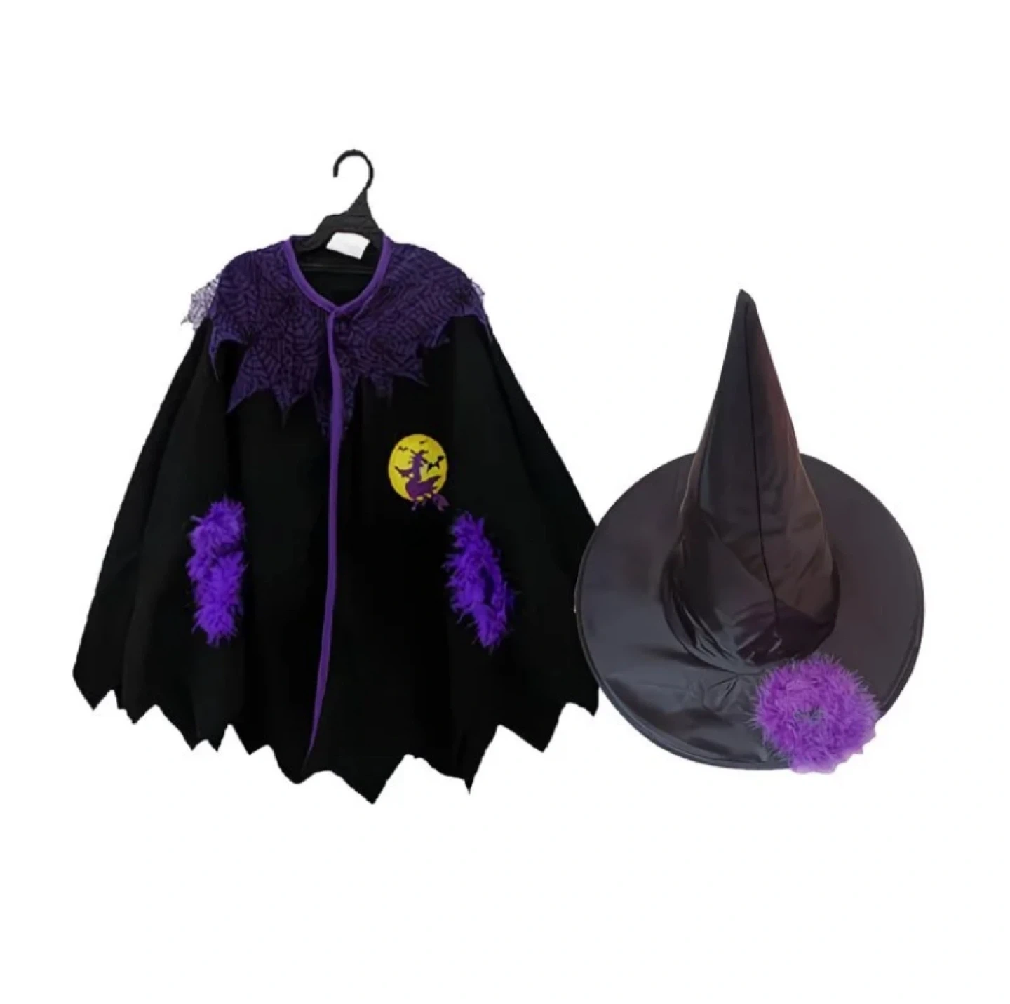 Get ready for Halloween with this cute witch costume! It includes a hat, cape, and wand, perfect for dress-up and trick-or-treating Size for under 150cm girls