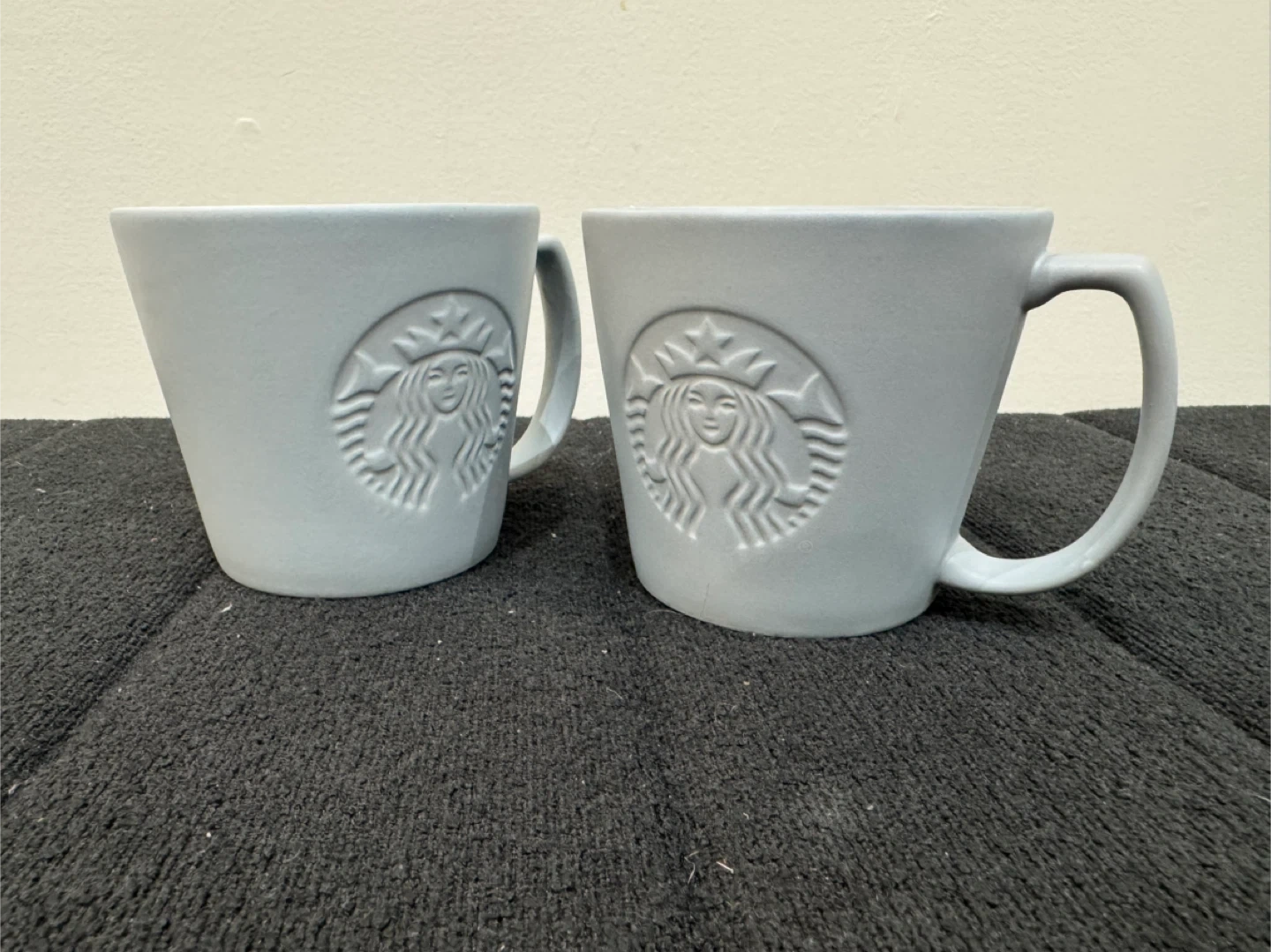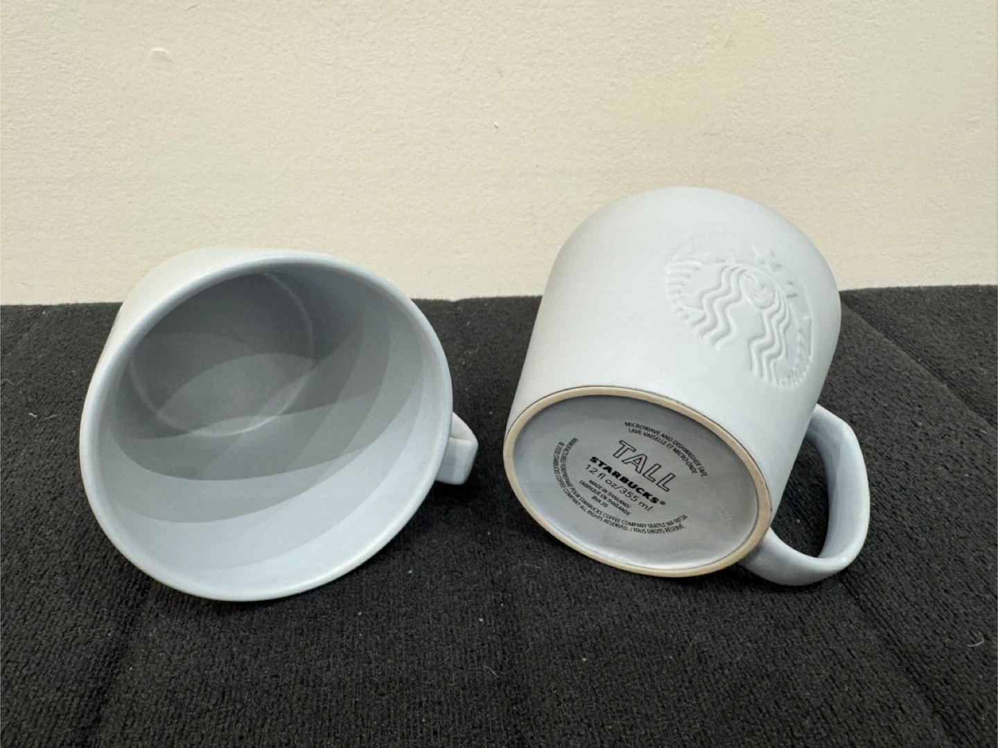 Selling a set of two Starbucks tall mugs in a lovely grey colour! One mug has the Starbucks logo embossed on the side. They each are in great condition.