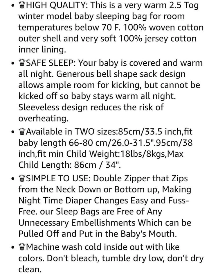 Never used 2.5 tog good for 6 months to upto 2 years depending on size of your baby