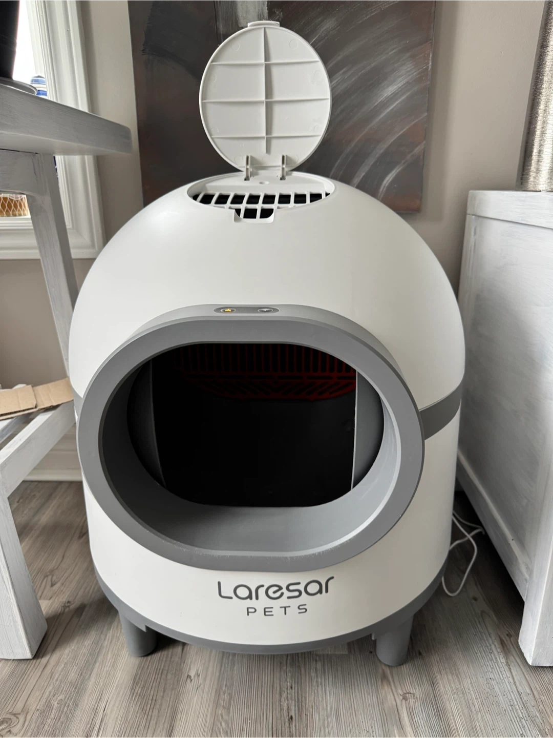 Selling a Laresar automatic cat litter box. It's in great condition and ready for a new home. This self-cleaning litter box makes pet care a breeze! Used for only a few months. We got another cat (3) so we needed a bigger one.