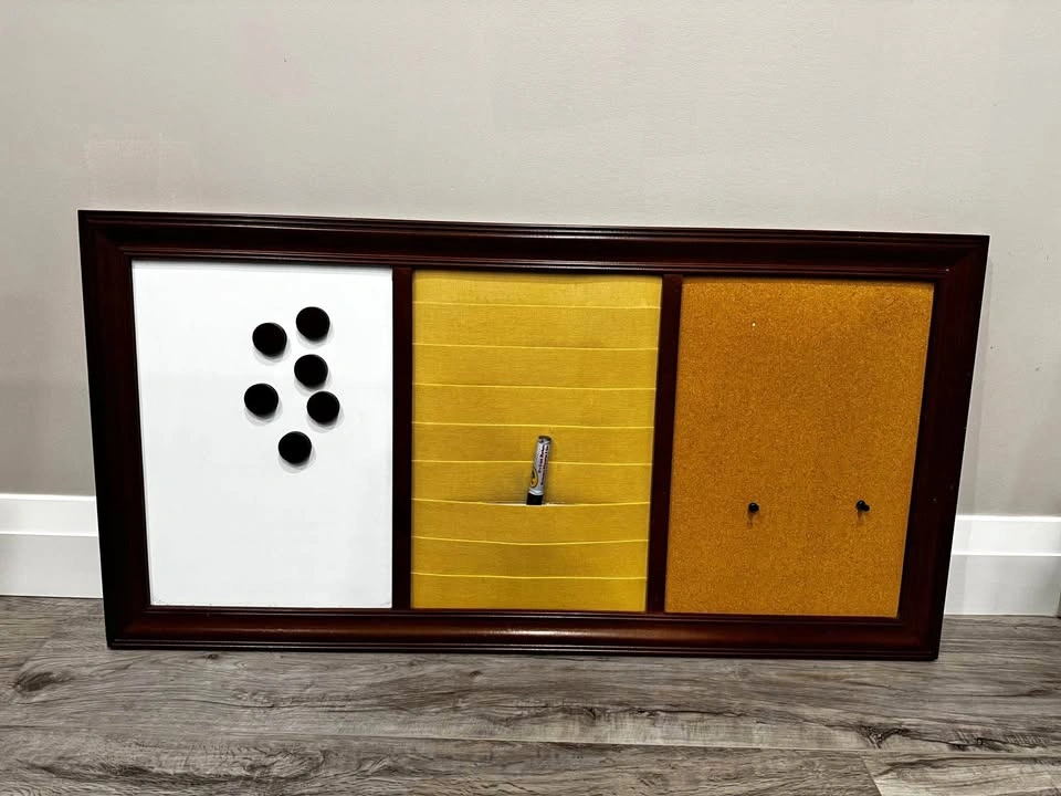 Wall organizer/planner/message board White board with magnets, file holder and cork board Measures 37.5” long x 19” wide