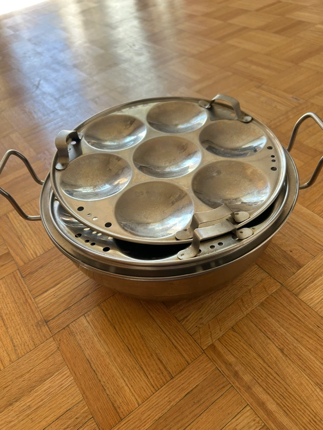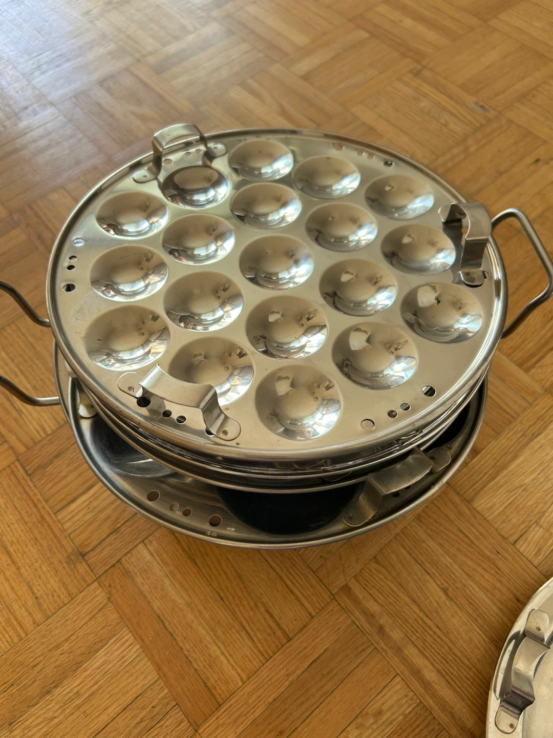 Selling a stainless steel idli steamer! It's in great condition and ready to help you make delicious idlis at home. This steamer comes with multiple tiers for steaming a large batch at once. Perfect for anyone who loves South Indian cuisine!