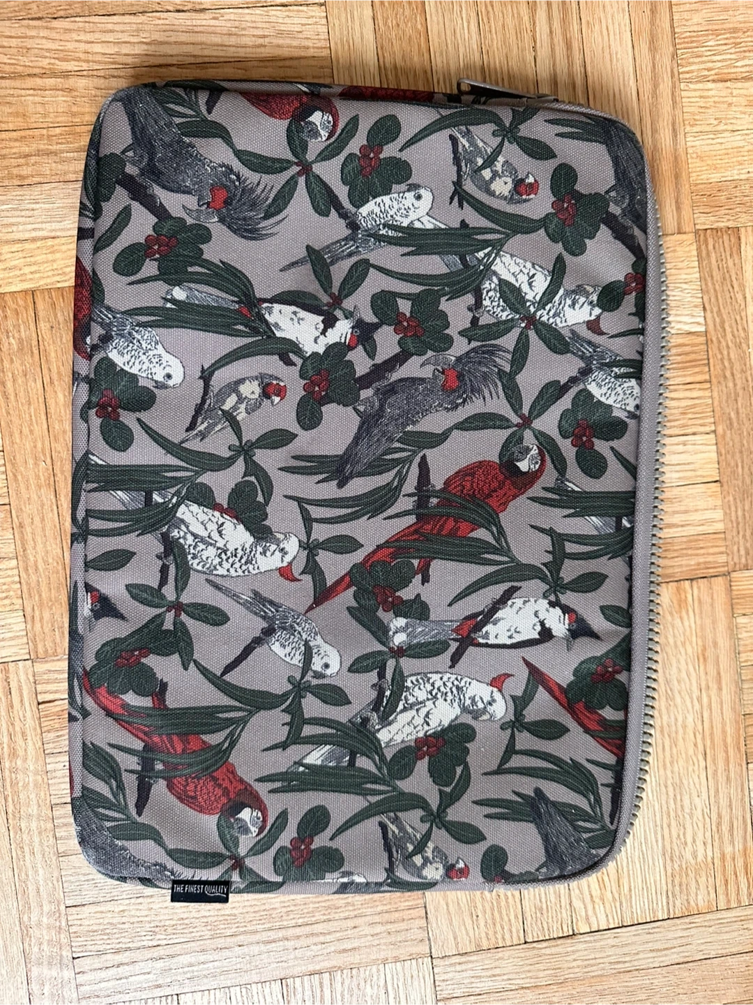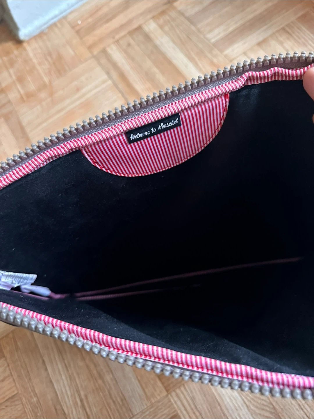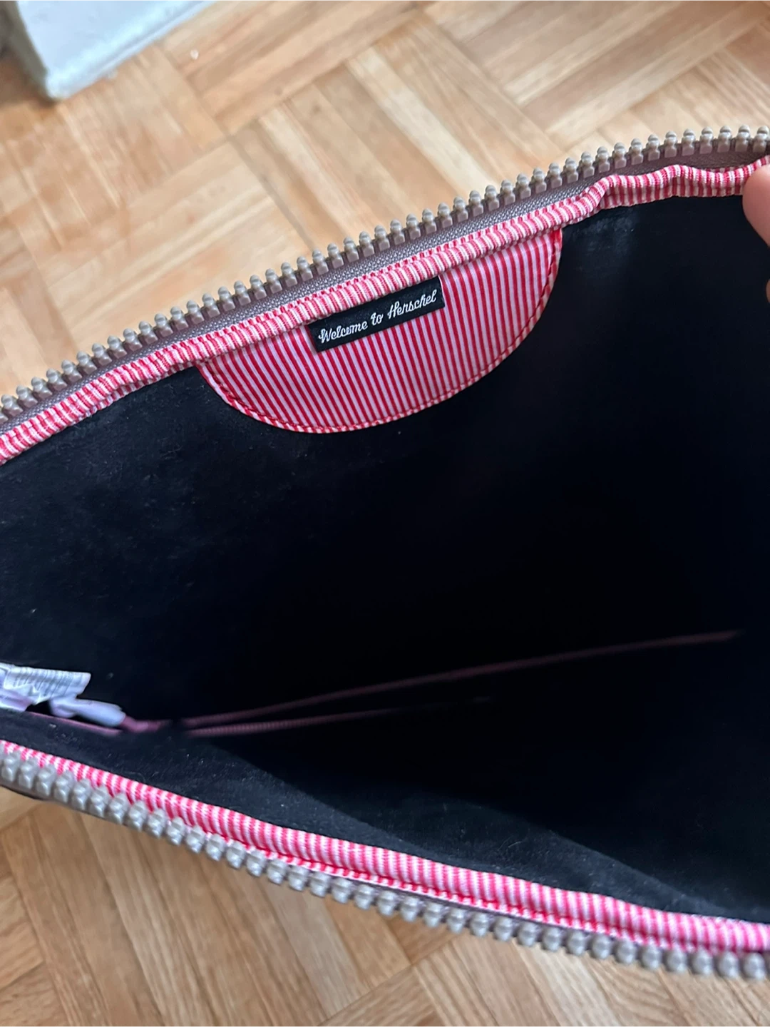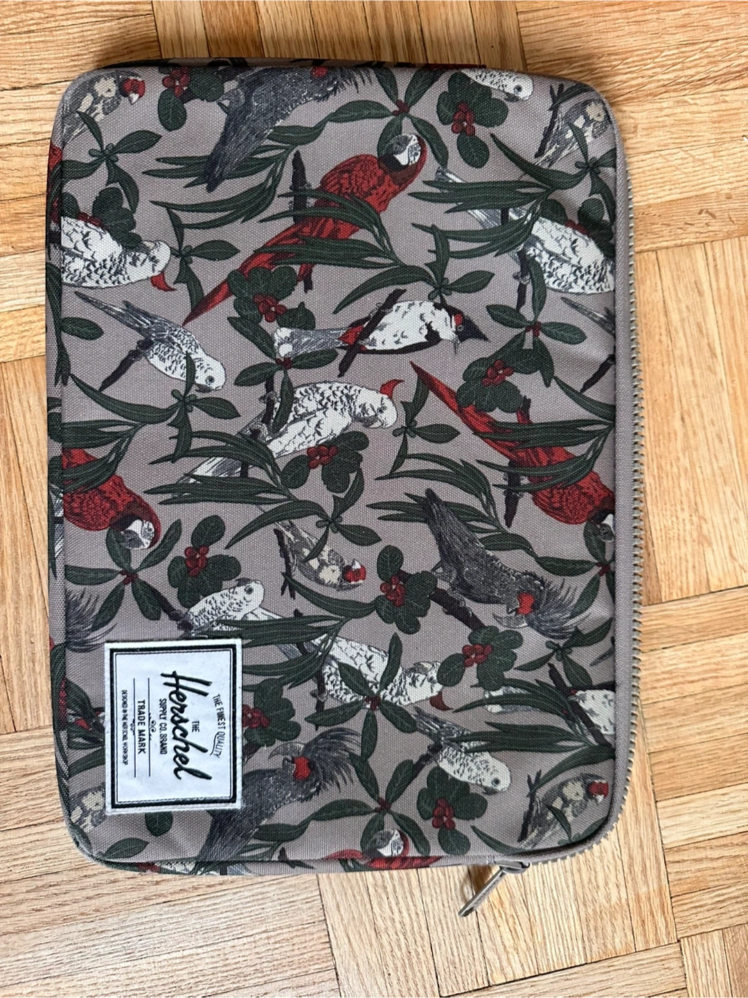 Selling a Herschel laptop sleeve with a unique bird pattern! It's in great condition and features a zipper closure. The inside has a red and white striped lining. For my MacBook Pro 14 inches it is perfect. Perfect for protecting your laptop in style! Pick up near Yonge and Bloor