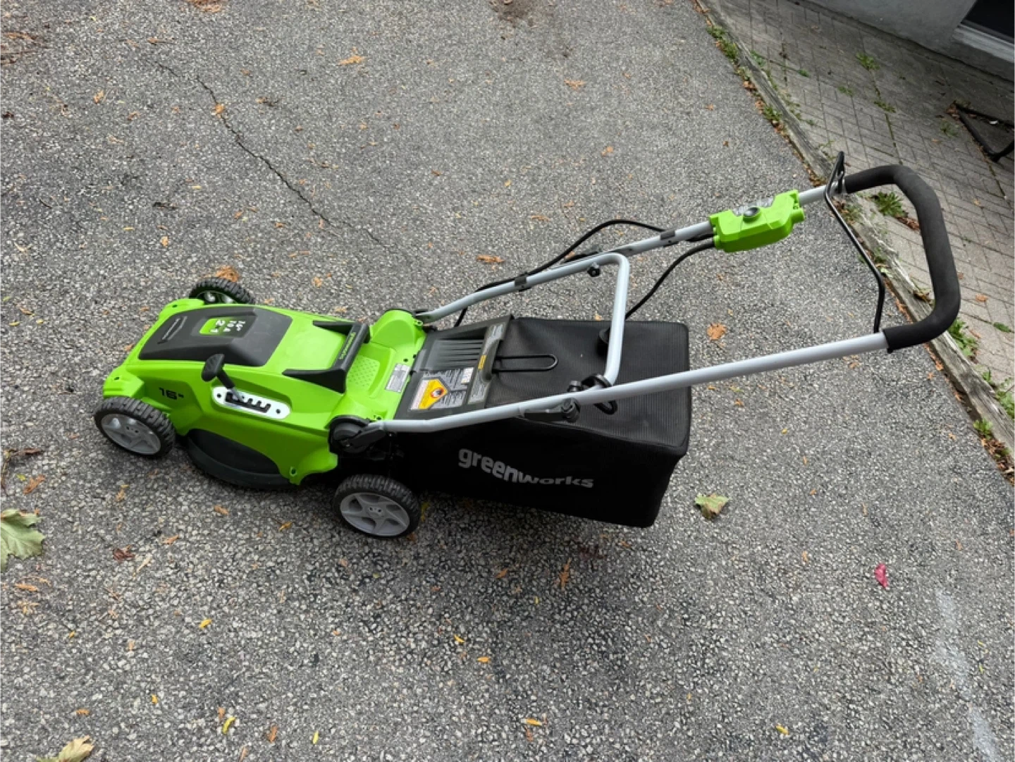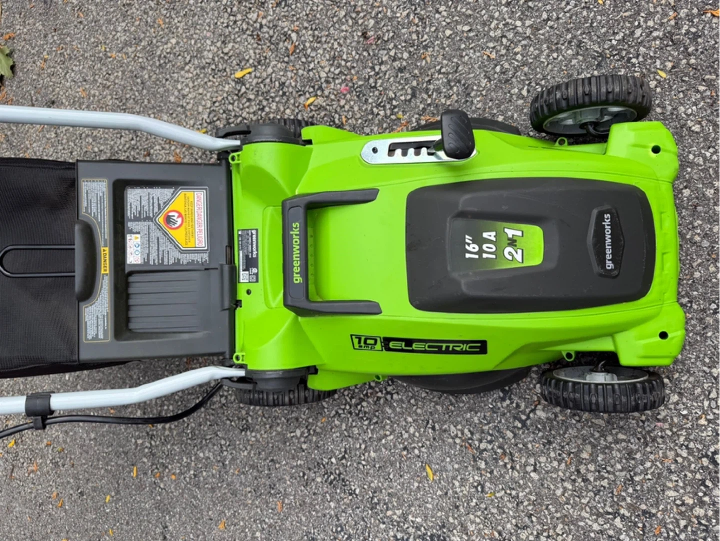 Selling a Greenworks 25142 10 Amp 16-Inch Corded Lawn Mower! It's in great condition and ready to tackle your lawn. This model is a 16-inch, 10 Amp electric lawn mower, perfect for smaller yards. It's lightweight and easy to maneuver. Pick up Richmond Hill