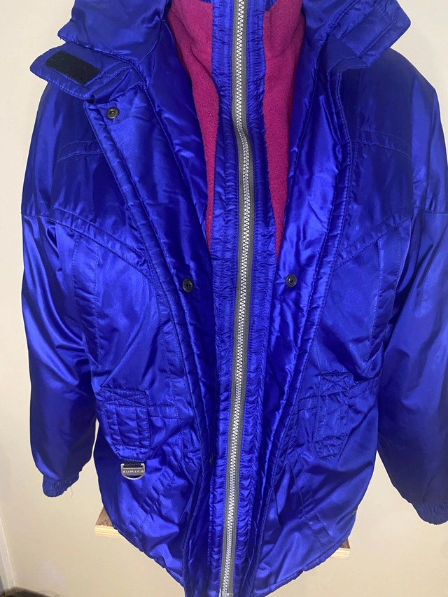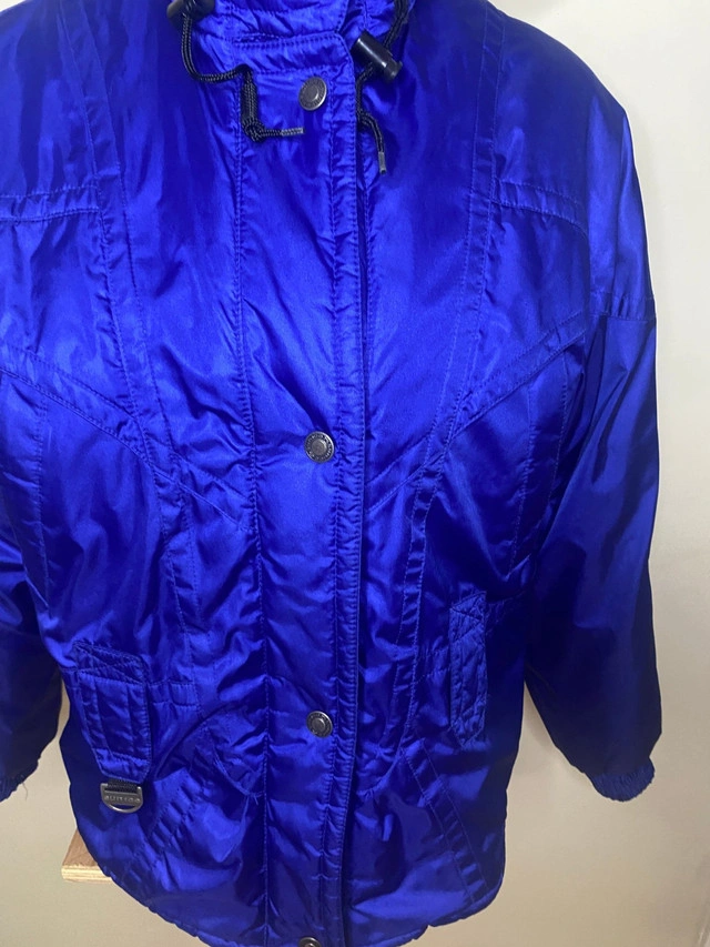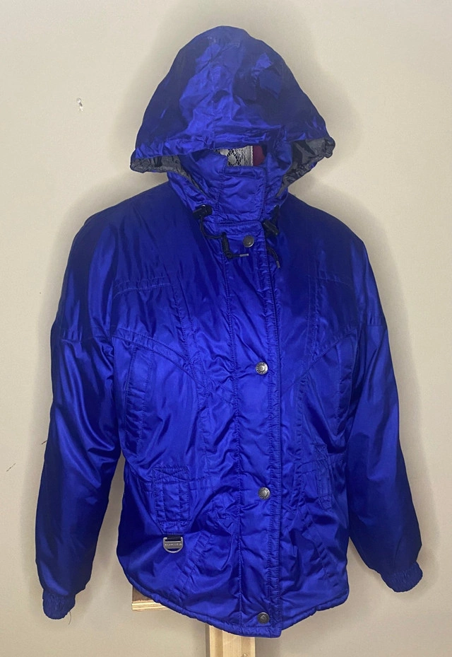 Whether you are flying down the slopes, enjoying a chilly winter day, or taking in some après ski activities, look great doing so while wearing this vintage Sun Ice Fire Ice Women’s Blue Winter Ski Jacket. The Sun Ice Fire Ice Women’s Blue Winter Ski Jacket is a premium winter jacket designed for skiing and other winter activities. It combines style, warmth, and performance when you need it most. The waterproof and breathable materials will help keep you dry and comfortable in snowy or wet conditions as you work your way down the slopes, battle the harsh weather or have a snowball fight. The combination zip, button and Velcro closure ensures you are staying nice and toasty when the wind picks up. Not too bulky, this Sun Ice Fire Ice Women’s Blue Winter Ski Jacket is a size 10 or medium. For sizing specifics, please see the attached measurement guide included with the pictures in our listing. Some features include a zip/button/ Velcro closure, drawstring hood (please note that the thermal hood is missing on this item), internal pocket, zip exterior pockets. In excellent pre-owned condition with no rips, stains or smell. It is a women's medium winter jacket. For measurements, please see the attached picture included with this listing. Local pickup is in Etobicoke near Islington and The Westway.