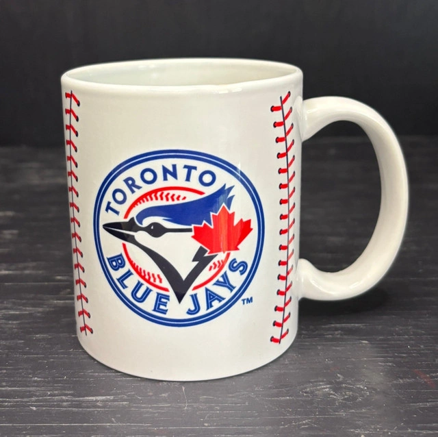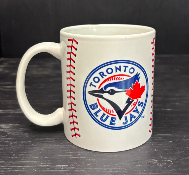There are 2 available. Show your support for Canada's favorite baseball team with this awesome Toronto Blue Jays Sublimated Baseball Mug. This officially licensed MLB mug is more than just a drinkware item, it is a sign to show off your Blue Jays pride as the journey towards their World Series Championship. Perfect for any devoted Blue Jays fan or sports collector, this mug features a full wrap sublimated graphic that mimics the seams of a baseball. There is no mistaking the Blue Jays logo, with its proud jay and Canada flag theme. If you are enjoying your morning coffee, an afternoon tea, or a hot chocolate during a nail-biting game, this mug is designed to keep your beverage at the ideal temperature while showcasing your love for the Jays. Bring the excitement of the ballpark right into your home or office with this great Toronto Blue Jays mug. Local pickup is in Etobicoke near Islington and The Westway.