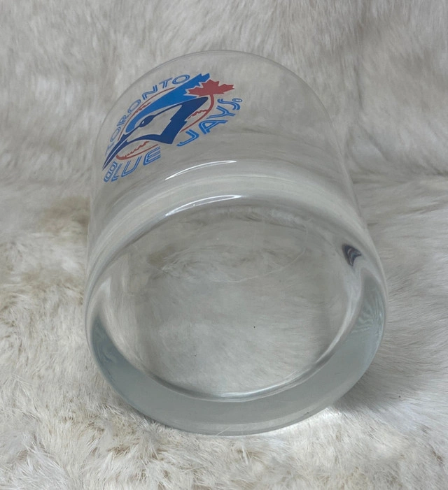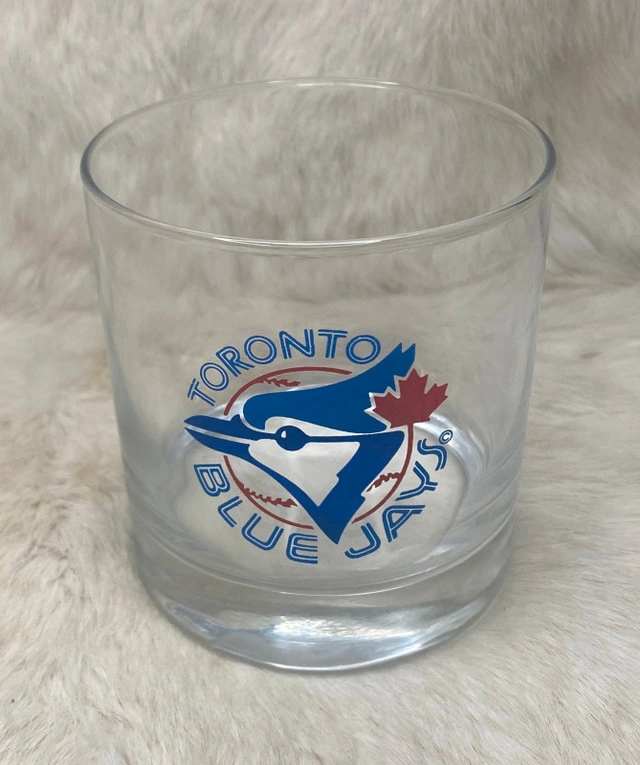 5 available. Celebrate part of Canada’s great baseball legacy with Retro Toronto Blue Jays Rock Glasses. There is no better way to root them on than to raise a glass of your favorite beverage as they battle on their journey to the World Series. These stylish lowball glasses feature a vintage Blue Jays logo that brings a touch of nostalgia to your drink and sports collectible collection. Made with heavier glass, they are perfect for enjoying your favorite drinks while cheering on the Blue Jays or adding a unique flair to your bar setup. Great for Blue Jays fans and baseball collectors alike, these rock glasses make a great gift or a charming addition to any Blue Jays fan's home and will look great as you entertain friends while watching the game. Get in the game with these awesome Retro Toronto Blue Jays Rock Glasses. These Retro Toronto Blue Jays Rock Glasses measure approximately 3.5 inches tall and are in excellent like new, pre-owned condition. Price is for one Toronto Blue Jays rock glass. Local pickup is in Etobicoke near Islington and The Westway.