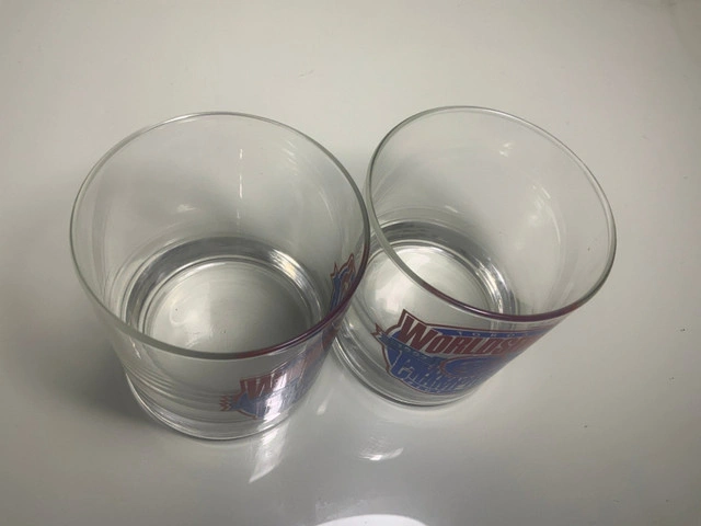 Celebrate the championship glory of the Toronto Blue Jays with this officially licensed World Series Champions Rock Glasses Set. Designed for Jays fans, sports and barware collectors, each glass proudly displays the Blue Jays and World Series Champion logos that commemorate their historic 1992 and 1993 World Series victories, making every sip a tribute to baseball greatness. Made from heavier glass, these Blue Jays rock glasses are perfect for enjoying your favorite drink at your home bar. The sturdy construction ensures durability while the timeless design makes them an elegant addition to your bar, man cave, or dining collection. This glasses set is a piece of Blue Jays history that brings back the pride and excitement of championship wins. Raise a glass during the big game, share stories with friends, or give these as a great gift to the diehard Blue Jays fan. These Toronto Blue Jays World Series Champions Rock Glasses will keep the winning spirit alive. Bring home the legacy of the Toronto Blue Jays and keep their championship spirit close at hand. These Toronto Blue Jays double old fashioned glasses measure approximately 4” tall and are in like new condition with no signs of use. The price if for a set of 2 glasses. Local pickup is in Etobicoke near Islington and The Westway.