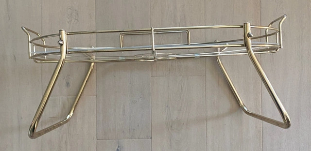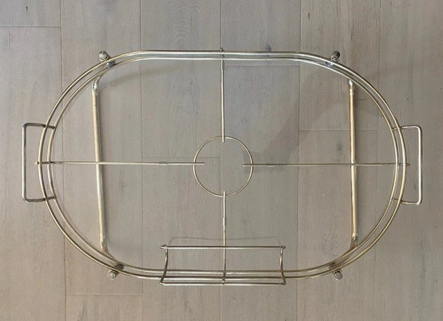 Curl up in your warm blanket as you get ready to be served breakfast in bed with this phenomenal Vintage Brass Breakfast In Bed Serving Tray. A fantastic personal serving tray for not only your special days, but for times you need to be pampered. The vintage brass tray allows you to sit back and relax as you get that special treat of having breakfast in bed served to you. Or use it if you are reading a book, magazine or newspaper or are on your iPad or laptop. There is no need to worry about propping these things up as it has a ready made book rest that makes it easy to view your reading material while freeing your hands to enjoy that special breakfast. An excellent piece to help spoil yourself or significant other and to enjoy a lazy morning in bed. Of note, the original glass top has been replaced with plexiglass. Local pickup is in Etobicoke near Islington and The Westway.