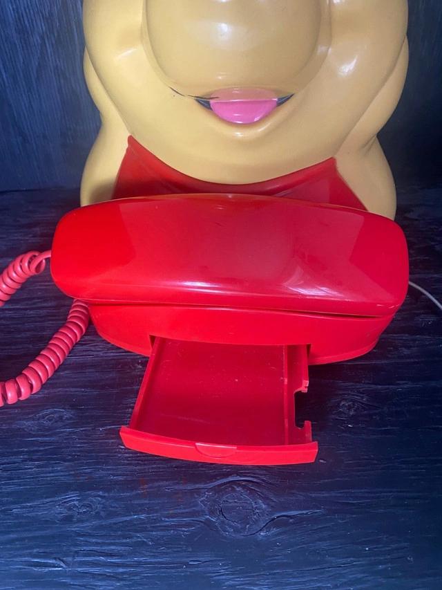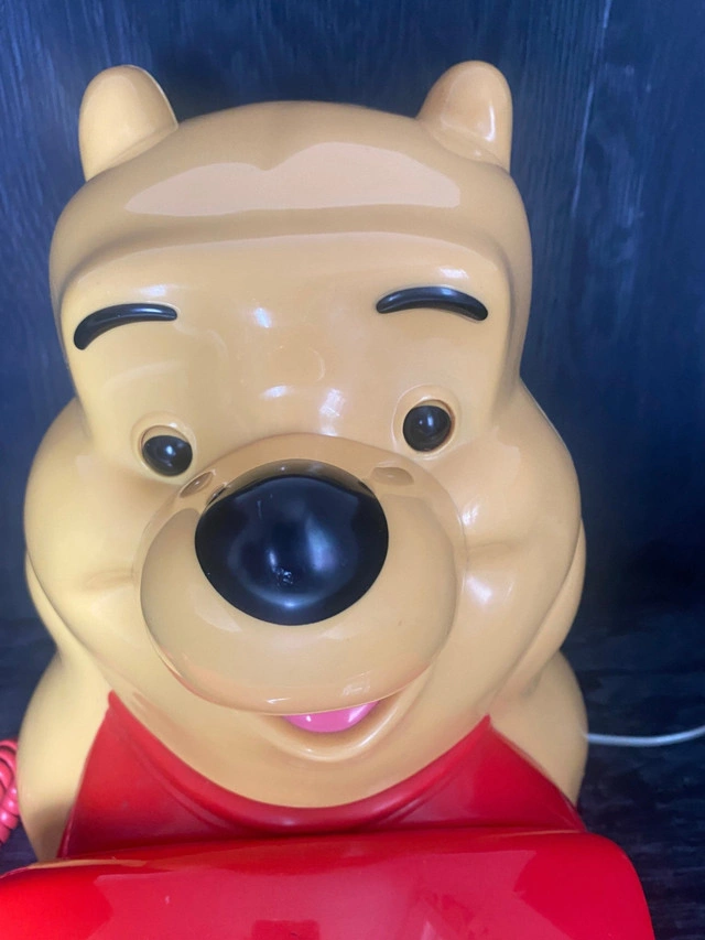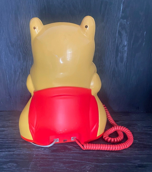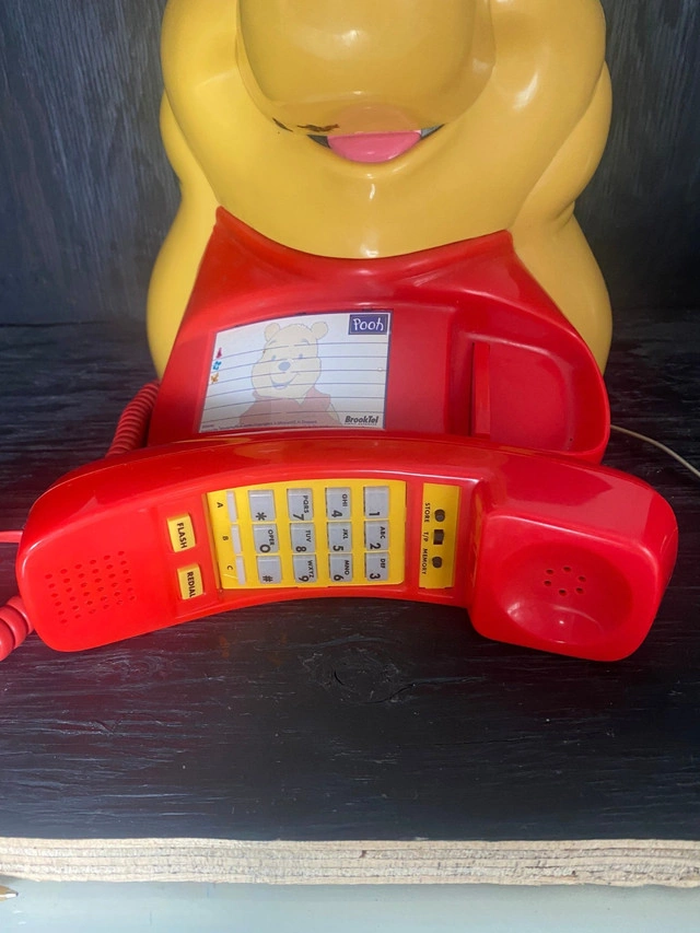 Who cannot love Winnie the Pooh? The simple and lovable cartoon character leads a life many of us desire. You can now own a piece of this wonderful life with this great Vintage Winnie the Pooh Telephone. A touch dial phone, this Winnie the Pooh phone sees a likeness of Pooh as he greets you while you make that phone call to that special someone. This Vintage Winnie the Pooh Telephone features all of the original parts including a push open tray, handset and phone number card. What a fun way to collect Winnie the Pooh memorabilia! This Vintage Winnie the Pooh Telephone measures approximately 12.5 inches tall. It was last plugged in and working on June 10, 2024. It is in great condition with nominal signs of wear/use. Local pickup is in Etobicoke near Islington and The Westway.