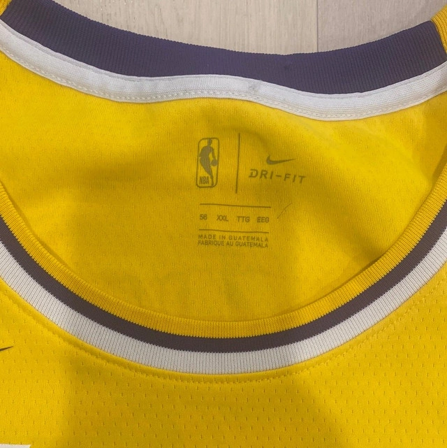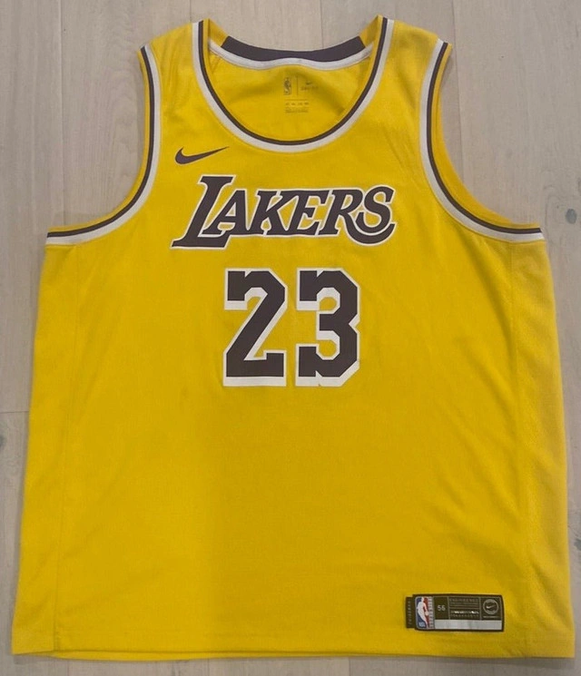Lebron James is an absolute beast on the court. Now you can display that court sense with this awesome Lebron James Los Angeles Lakers Nike Swingman Dri Fit Jersey. James can also shoot the 3 and defend with fierce competitiveness. This jersey measures as a size 56 or XXL. It is pre-owned but worn 2-3 times before being stored in a storage closet. For sizing guidelines, please see the attached picture included with this listing. Local pickup is in Etobicoke near Islington and The Westway.