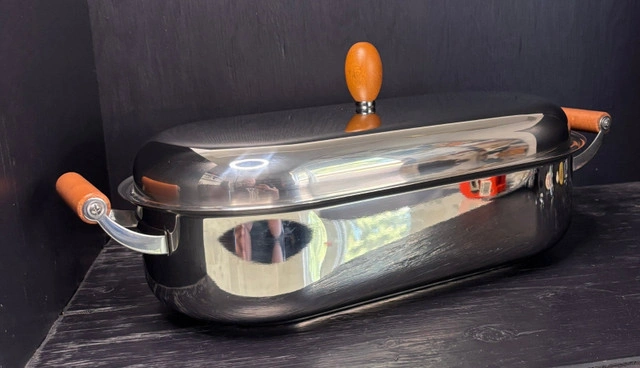 Achieve restaurant quality results at home with the Frabosk Stainless Steel Steamer Poacher. Made with quality stainless steel, this versatile kitchen poacher and steamer lets you steam or poach fish and seafood, vegetables, dumplings and more with precision and a touch of class. Its elegant, durable design ensures even heat distribution for perfectly cooked food every time. The rust resistant steamer is dishwasher safe and built to last you for years of preparing and serving your favorite meals. It will give you even heat distribution that allows for more consistent cooking, while the well designed handles allow for ease of grip and transport from oven to table. This Frabosk Stainless Steel Steamer Poacher measures approximately 16x9 inches with the pan being 4.5 inches deep without the lid. Add a versatile and stunning kitchen essential to your cookware with this Frabosk Stainless Steel Steamer Poacher. Local pickup is in Etobicoke near Islington and The Westway.