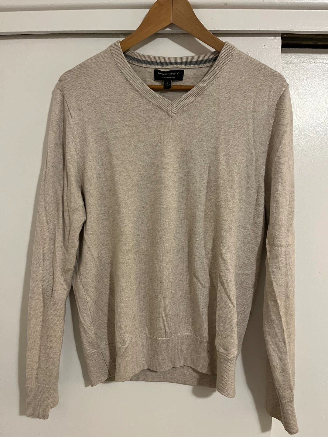 Selling a gently used Banana Republic sweater in size small. It's made with premium luxe yarn and is a light beige colour. Perfect for layering or wearing on its own!