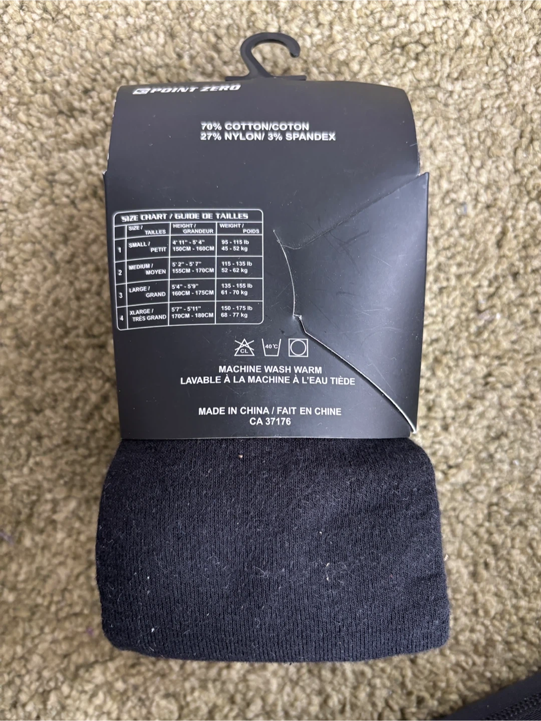 Selling a pair of Point Zero leg wear tights in black! They are size medium and made of 70% cotton, 27% nylon, and 3% spandex. Machine washable for easy care!