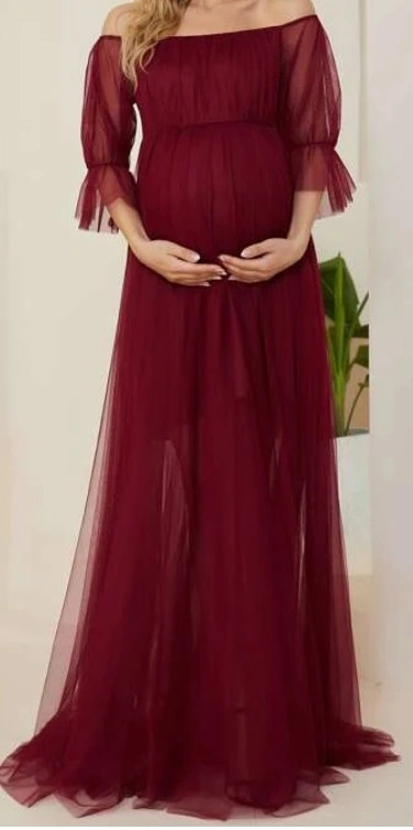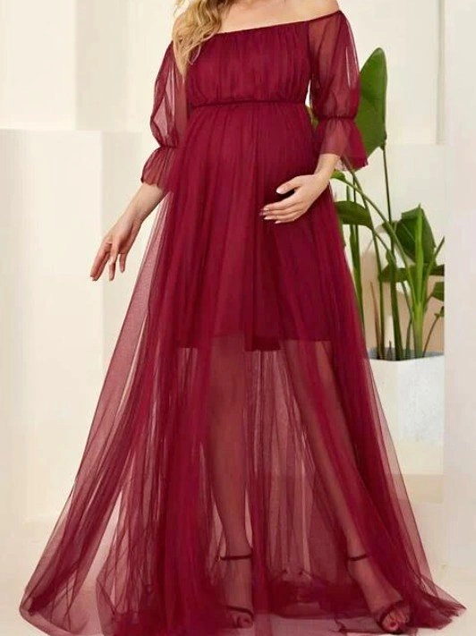 $50 OBO Color: Burgundy Style: Glamorous Pattern Type: Plain Details: Ruffle, Contrast Mesh Type: A Line Neckline: Off the Shoulder Sleeve Length: Half Sleeve Sleeve Type: Flounce Sleeve Waist Line: High Waist Hem Shaped: Flared Length: Maxi Fit Type: Regular Fit Fabric: Non-Stretch Material: Mesh Composition: 100% Polyester Care Instructions: Machine wash or professional dry clean Body: Lined Sheer: No Lining: 100% Polyester sizing: XL length: 54.7 bust: 36.6 waist: 33.1
