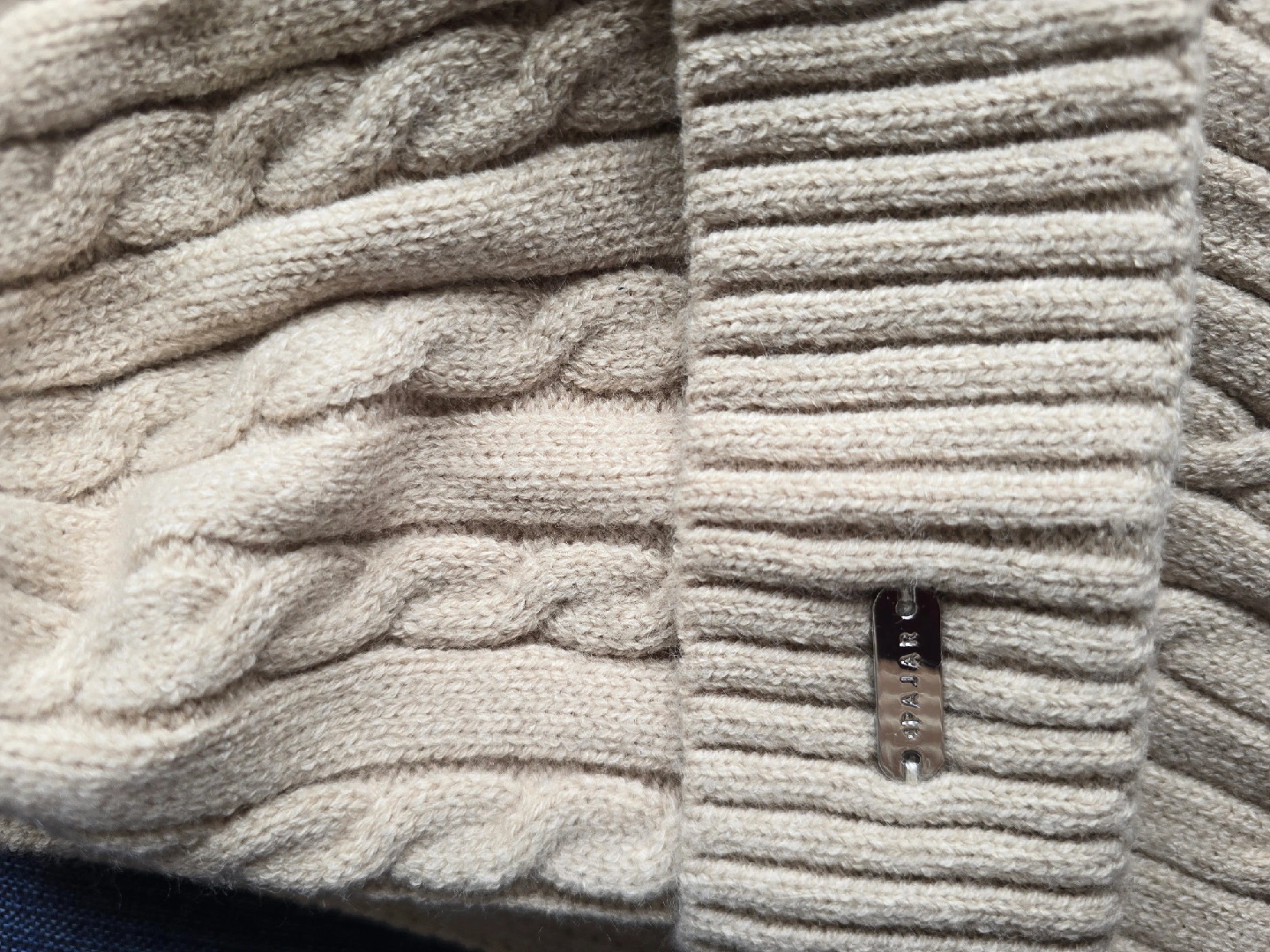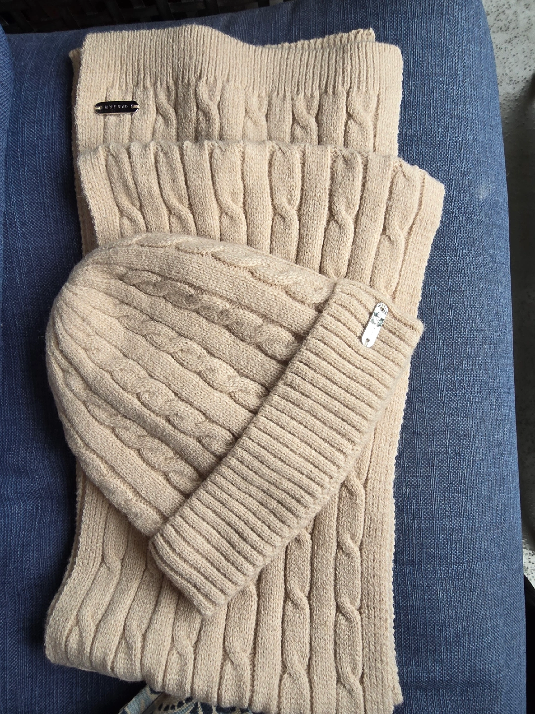 Cozy Pajar hat and scarf set, perfect for the Canadian winter! The set is made of 52% acrylic, 28% nylon, and 20% polyester. It's a beautiful beige colour with a cable knit design and has a soft lining for extra warmth Steeles and yonge pick up