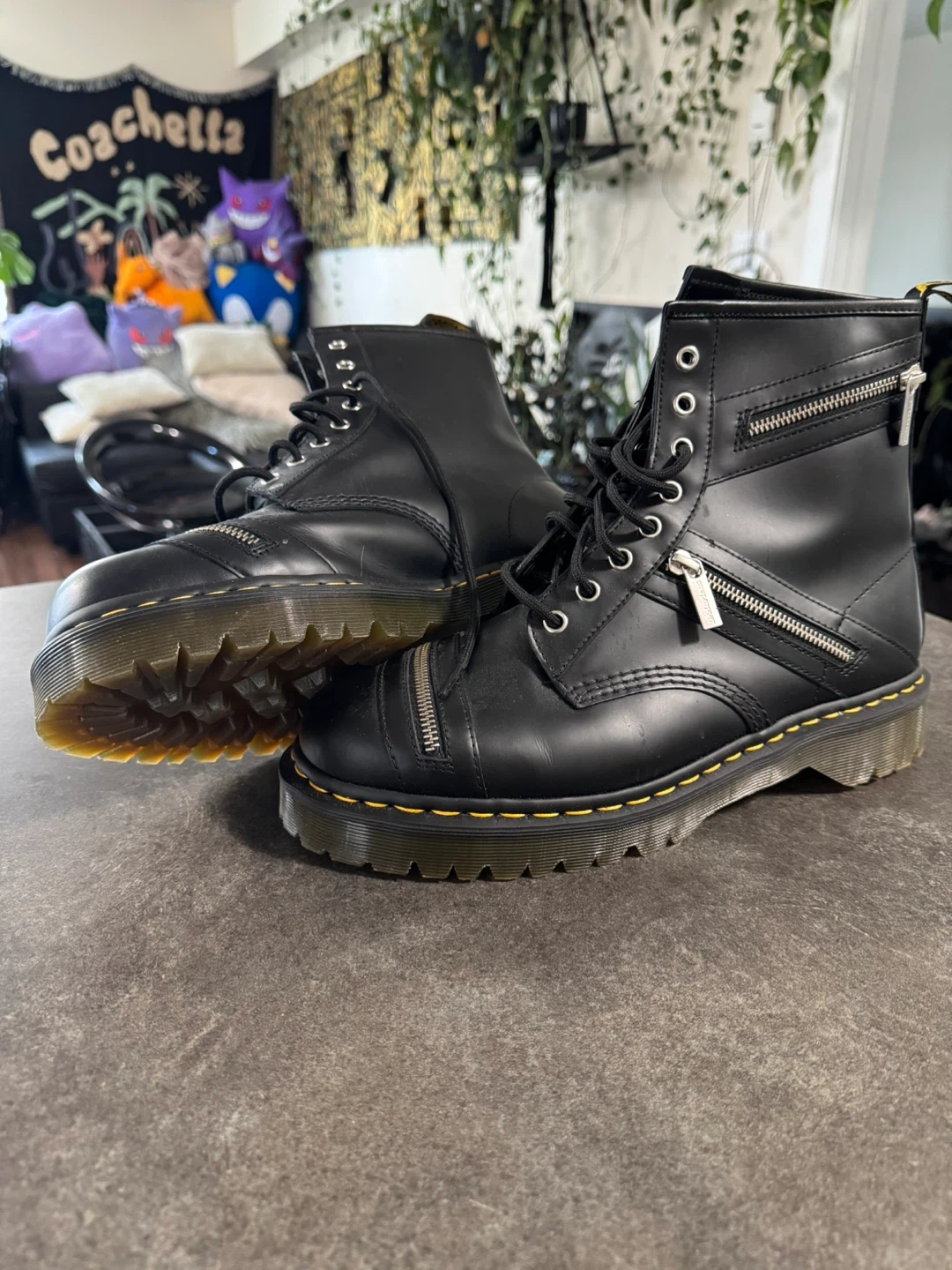 Selling a pair of Dr. Martens 1460 Bex Zip boots in US size 12. These boots are in great condition and feature the classic Dr. Martens look with a unique zip detail. Perfect for adding some edge to your style! Worn on a model for indoor photoshoot* Never used/worn again. Retail: $220+ cdn No box*