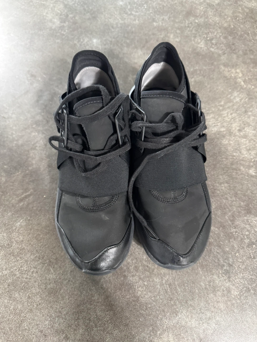 Selling a pair of Y-3 Yohji Yamamoto sneakers in black. They have a unique design and are in good condition. Preworn* good condition* Size woman’s 5.5 (fits tight) Downtown pick up only*