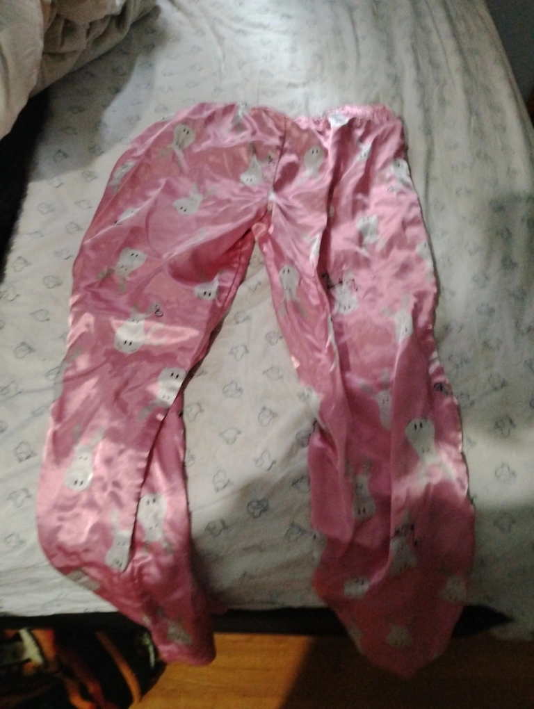 Selling a pair of pink pajama pants with a cute bunny pattern! They're comfy and perfect for lounging around the house. In good condition.