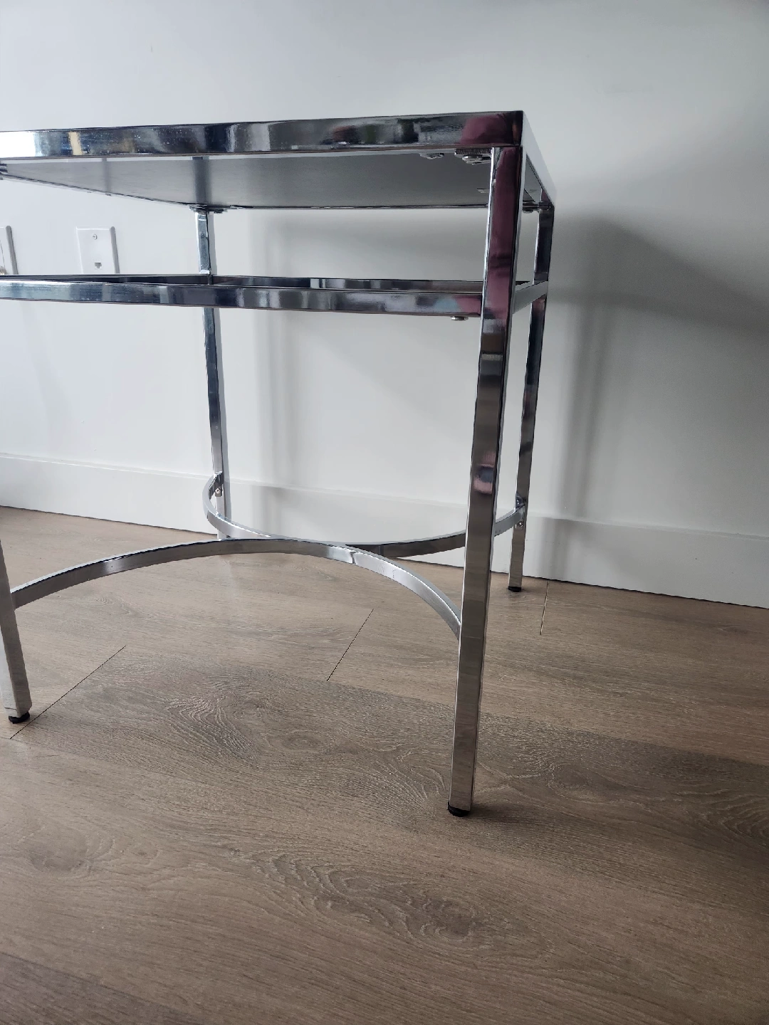 Selling a like-new chrome mirrored side, end or accent table from Bouclair. It's in great shape and would look lovely in any room. The mirrored top and silver frame give it a modern and elegant feel. I have 2 available, asking $60 for one or take the set for $100. All my items for sale are from a clean, pet and smoke-free home. Pickup location is at Leslie and 401/Sheppard near North York Ikea. Please check out my other postings for a bundle deals. Thanks for looking and happy shopping!