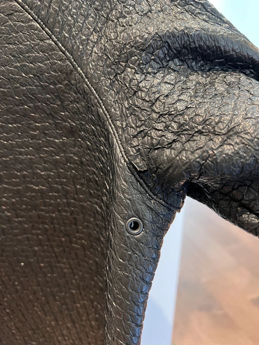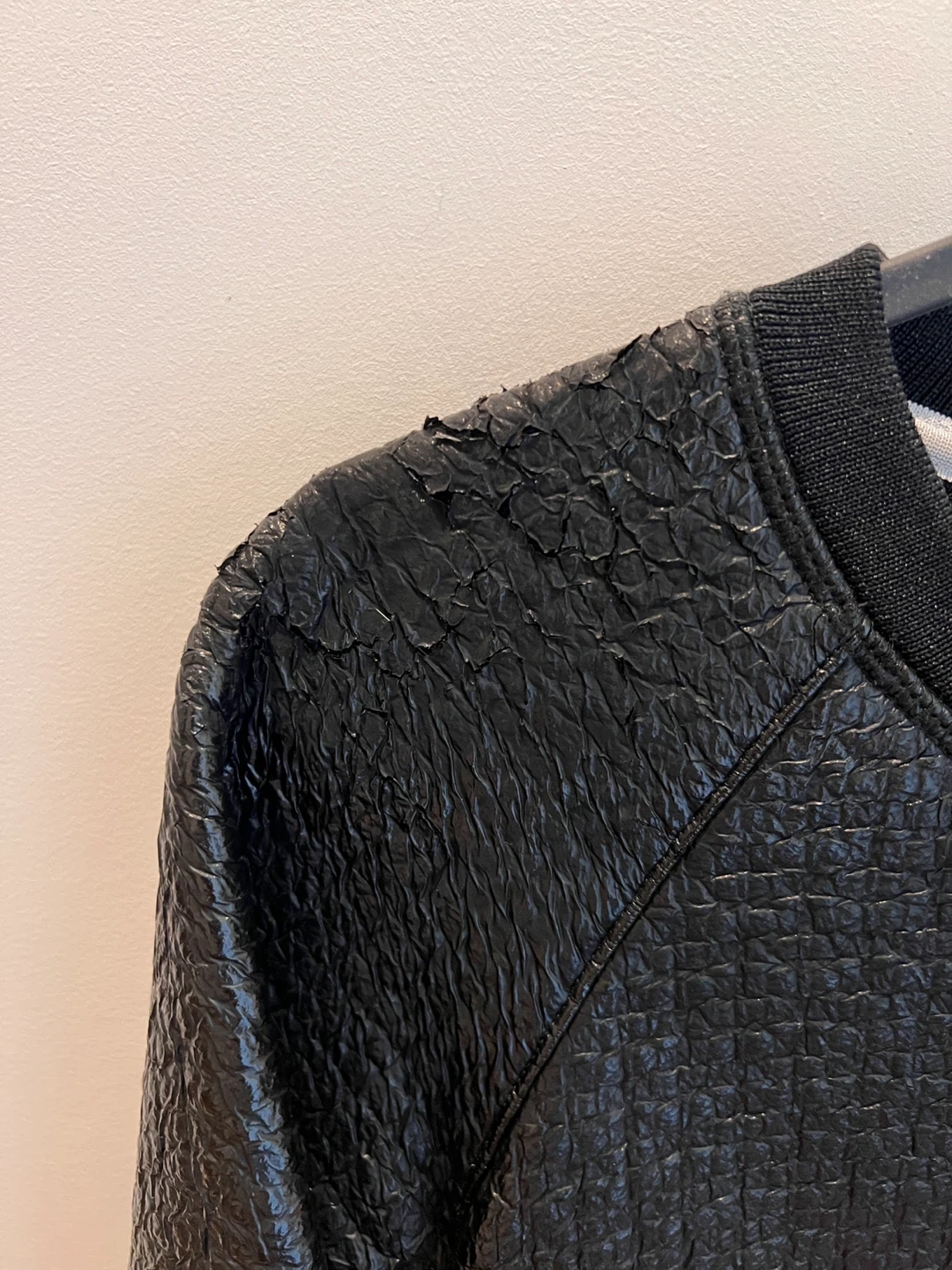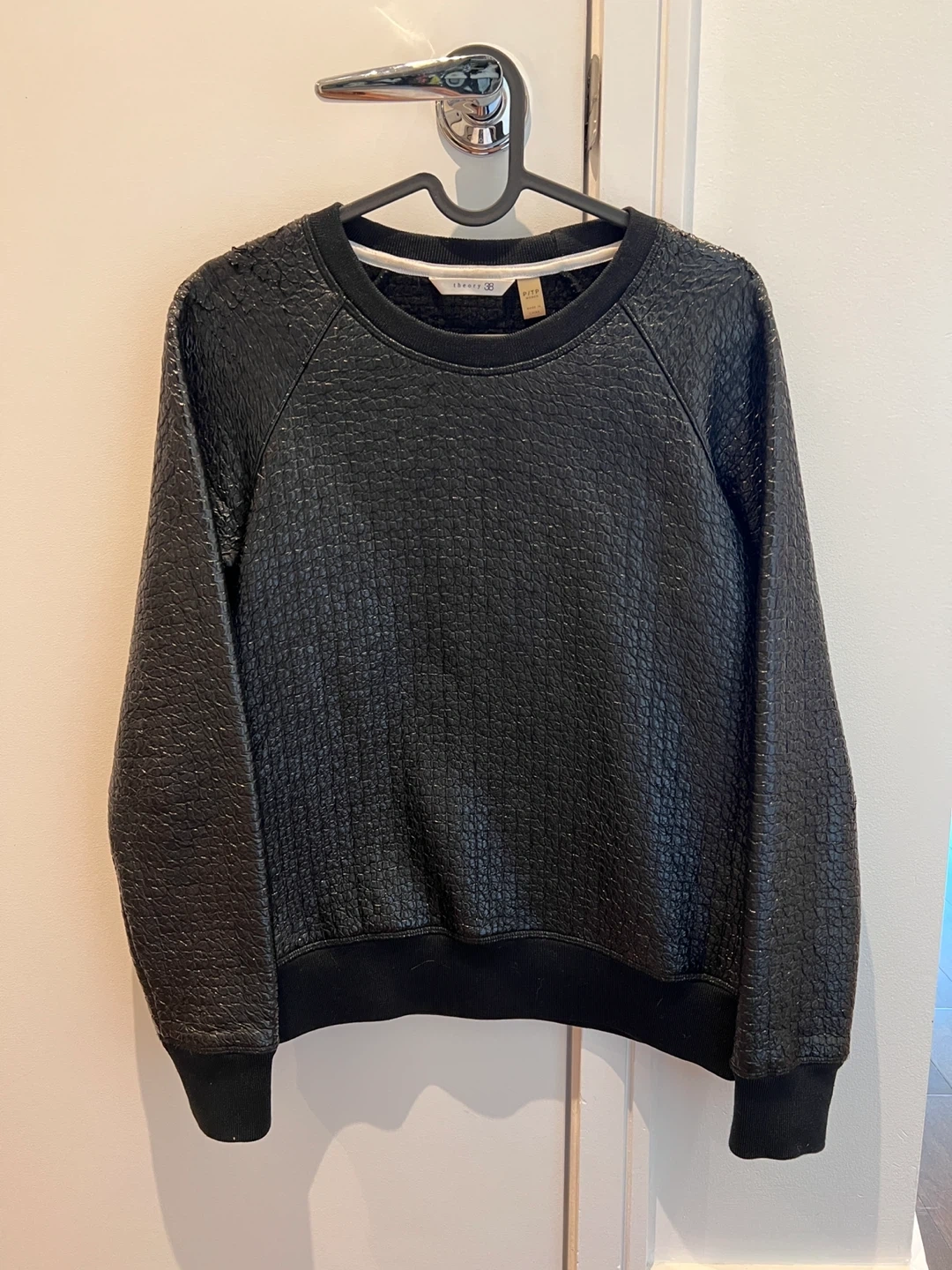 Selling a Theory 38 sweatshirt in size P/TP. It has a unique textured design and is black in colour. Please note there are some signs of wear as shown in the photos.
