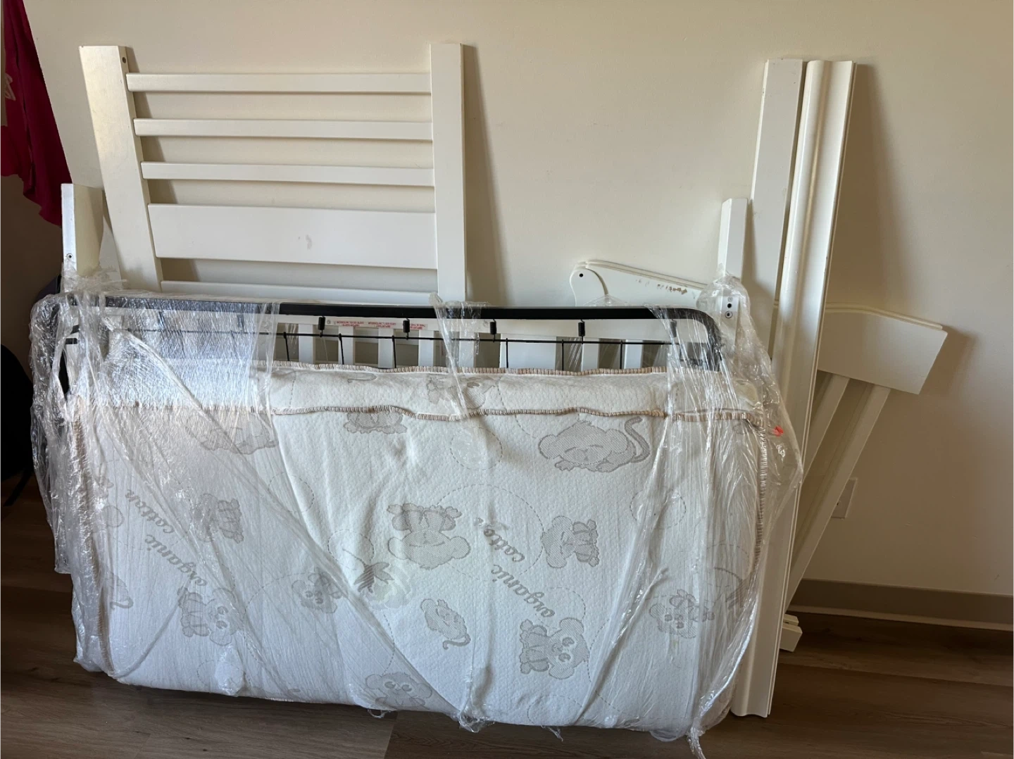 Selling baby crib with mattress in good condition! It's white and ready for a new home. Perfect for your little one's nursery