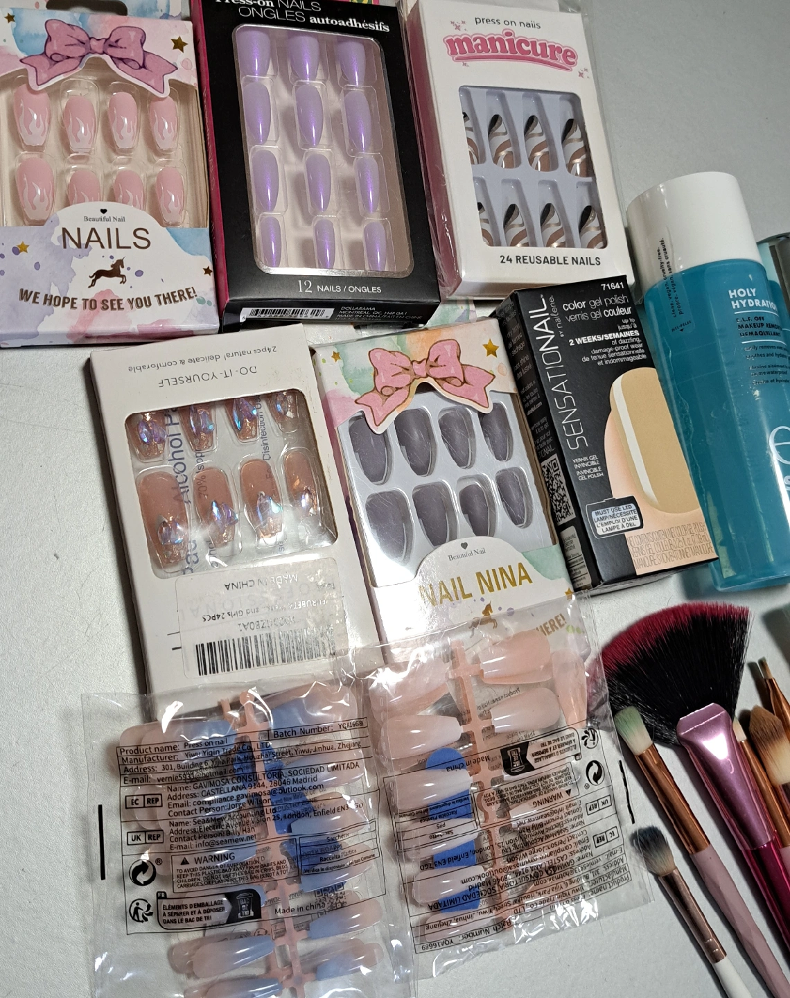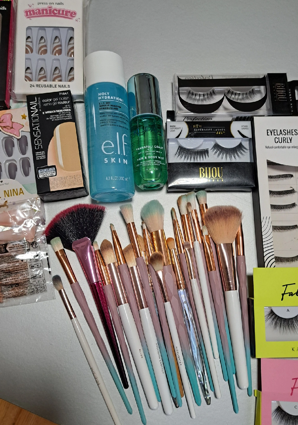 Selling a variety of makeup and several sets of press on nails! All items are in great condition and Brand New! Make Up Brushes - $3 (all) Elf Makeup Remover - $8 (Brand NEW) Hair & Body Mist - $2 Press On Nails - $5 (All nail related items) False Lashes - $5 (All lashes) --‐----------------------------------------------- EVERYTHING - $15