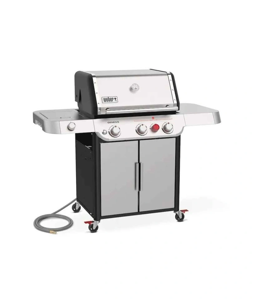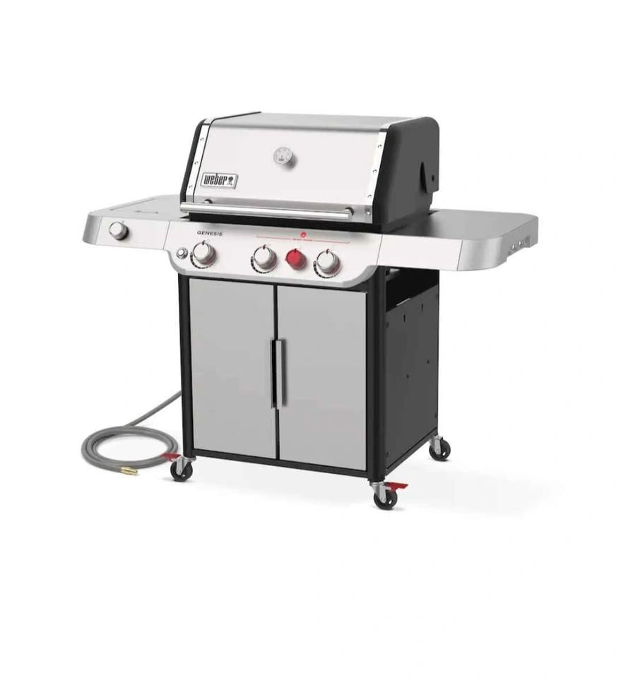 Weber Genesis S-335c 3-Burner Natural Gas BBQ in Stainless Steel with Side Burner BRAND NEW IN BOX $1280 MODEL NUMBER 1500579 The 3-burner, stainless-steel Genesis S-335C, with extra-large sear zone, delivers legendary Weber quality, performance and durability in a grill you can rely on to make outdoor cooking for family and friends easy and enjoyable. The PureBlu burner system sets this grill apart from the pack featuring unique, tapered burner tubes that generate consistent pressure and flames and deliver even heat across the grilling surface. Flames are directed above the raised gas ports, while food debris falls below, minimizing clogging and ensuring the grill lights every time. Extra-large sear zone has room to cook multiple steaks at once Side burner provides extra cooking space for sauces and sides PureBlu burners distribute even heat across the entire grate 7mm stainless steel cooking grates heat quickly, are highly durable FLAVORIZER Bars vaporize juices, boosting grilled flavour.